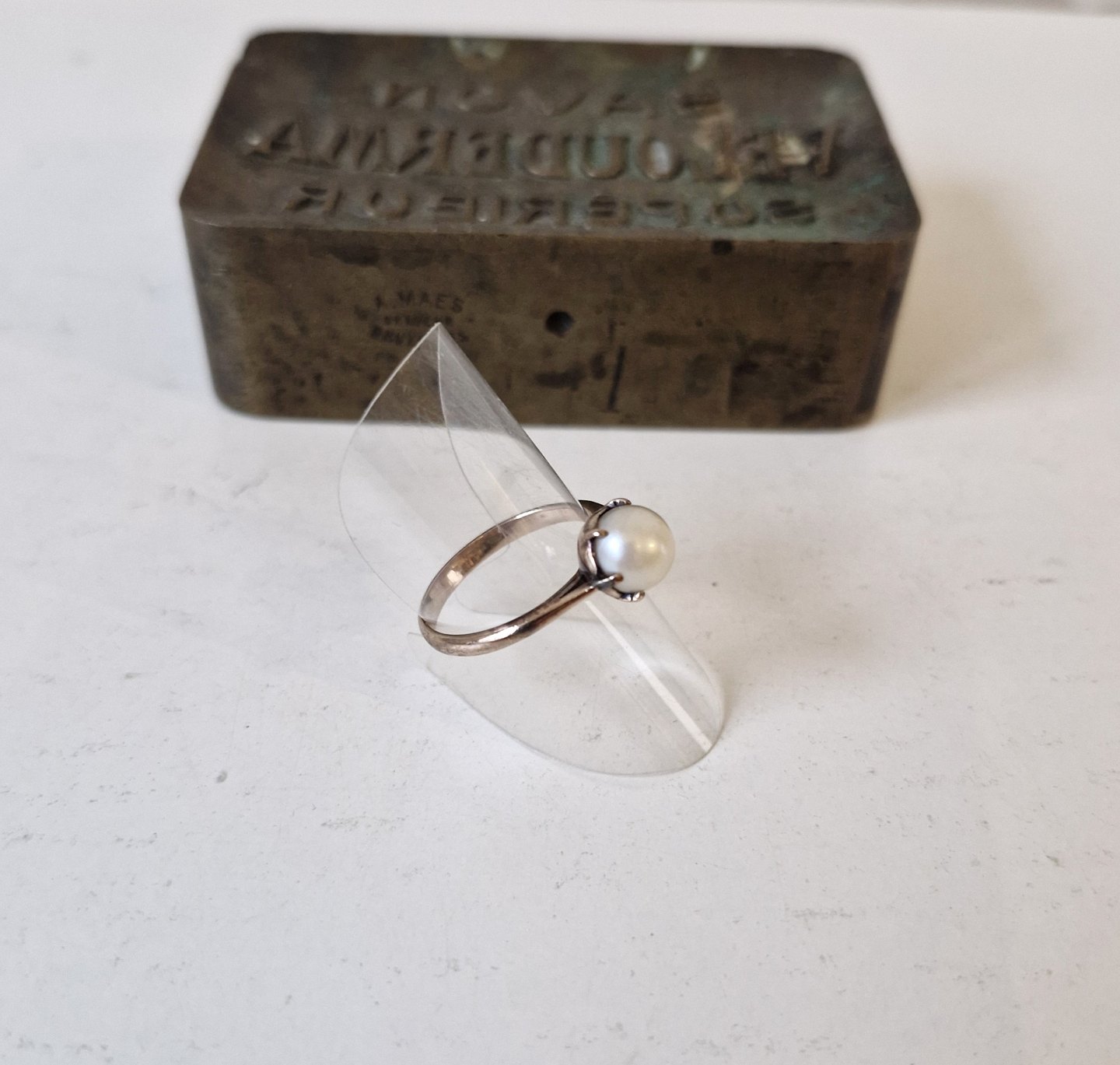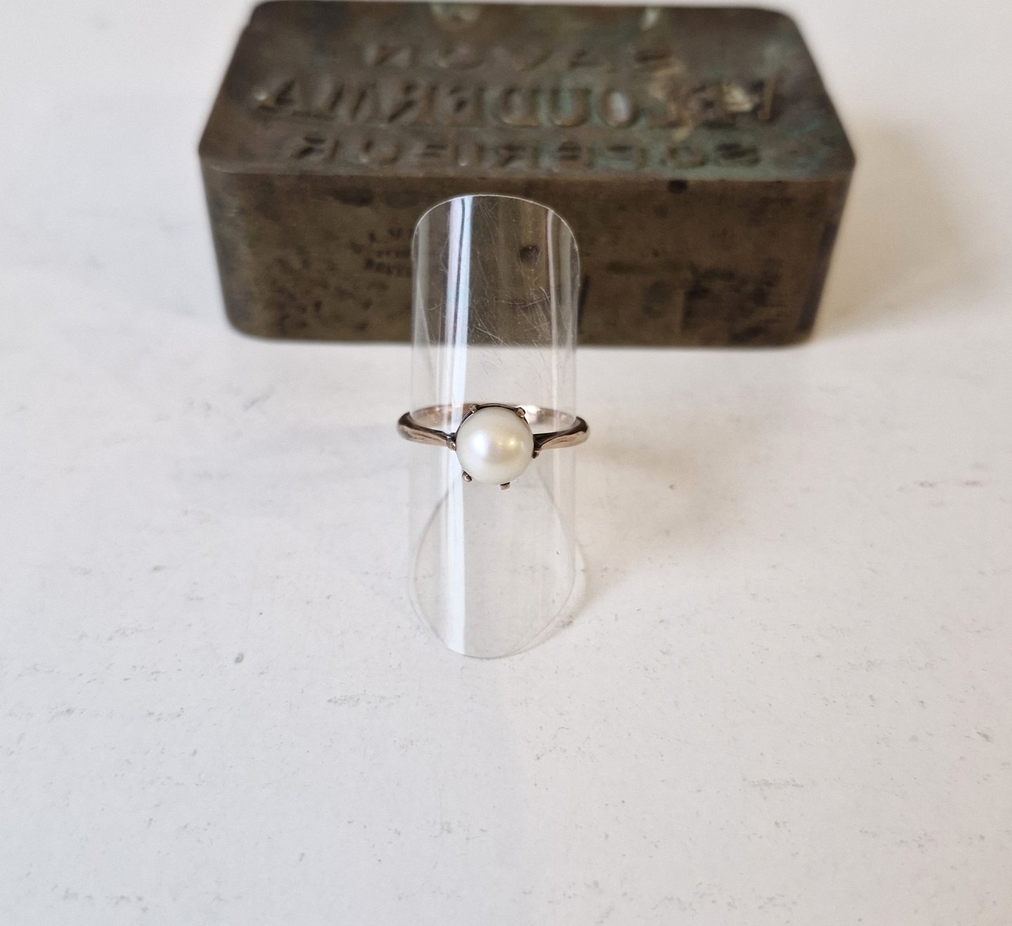 Beskrivelse: Vintage ring i 8 kt guld med akoya perle