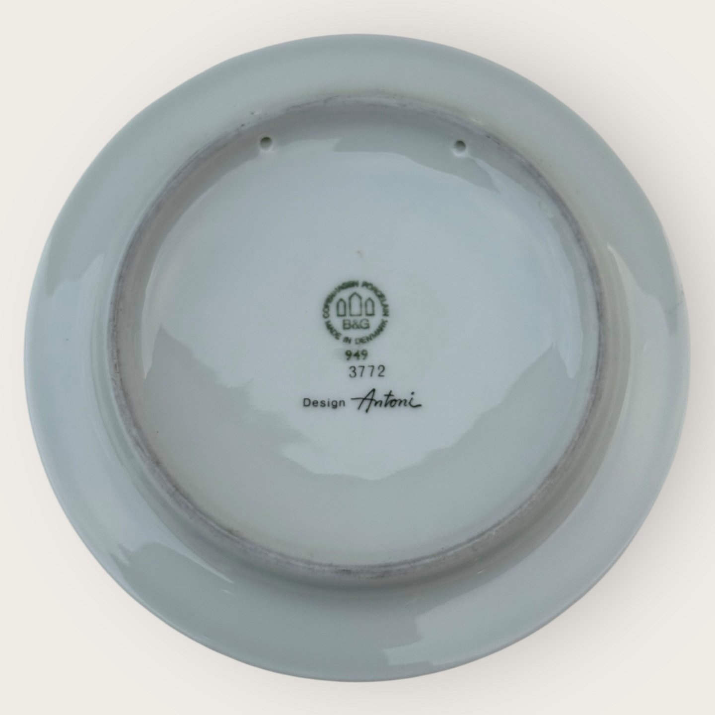 Beskrivelse: Bing & Grøndahl, Platte / bordskåner med sneglehus, Design Antoni 949 / 3772, diameter 15cm *pæn stand*