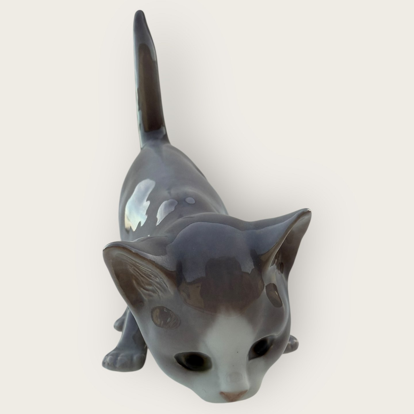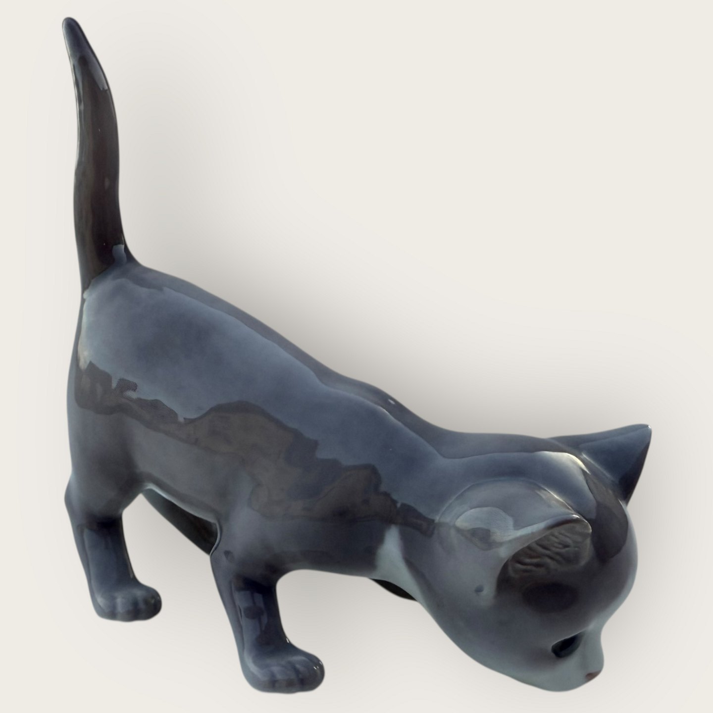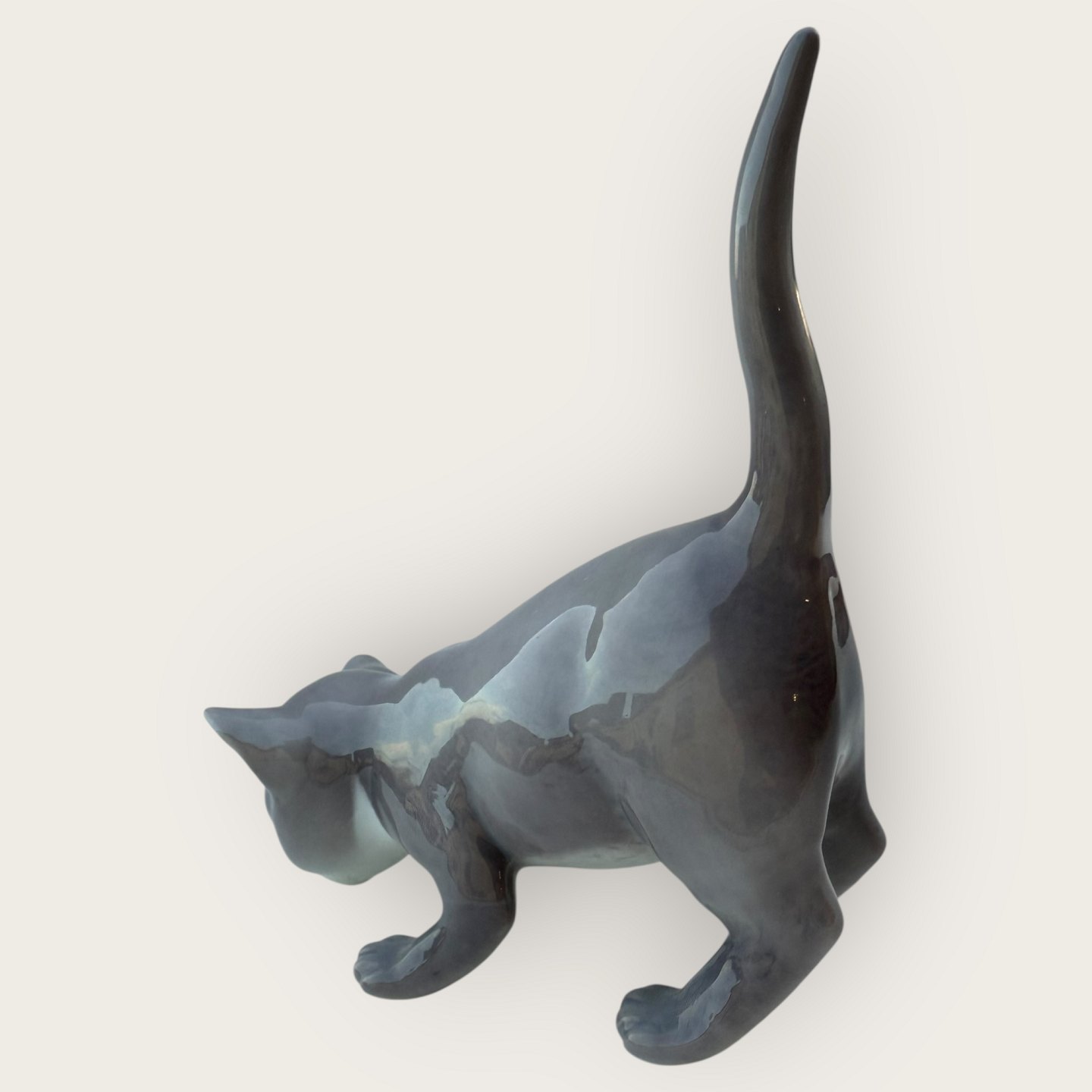 Beskrivelse: Bing & Grøndahl, Grå kat med løftet hale, # 2517, 1. sortering, Mål ca. 12x13x6cm *Fin stand*