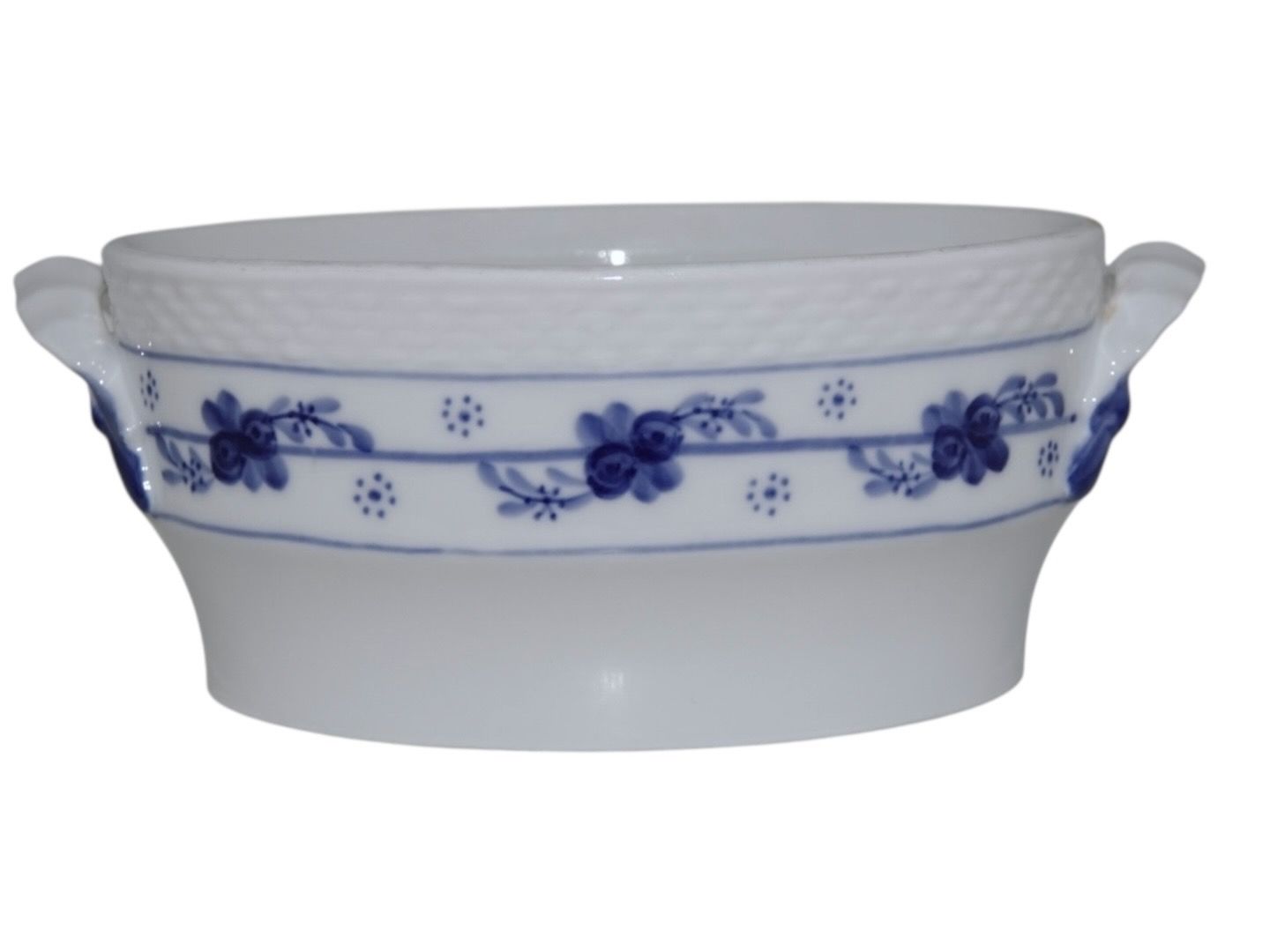 Beskrivelse: Royal Copenhagen Rosenknob / Blå Rose sjælden oval sukkerskål der mangler et låg.