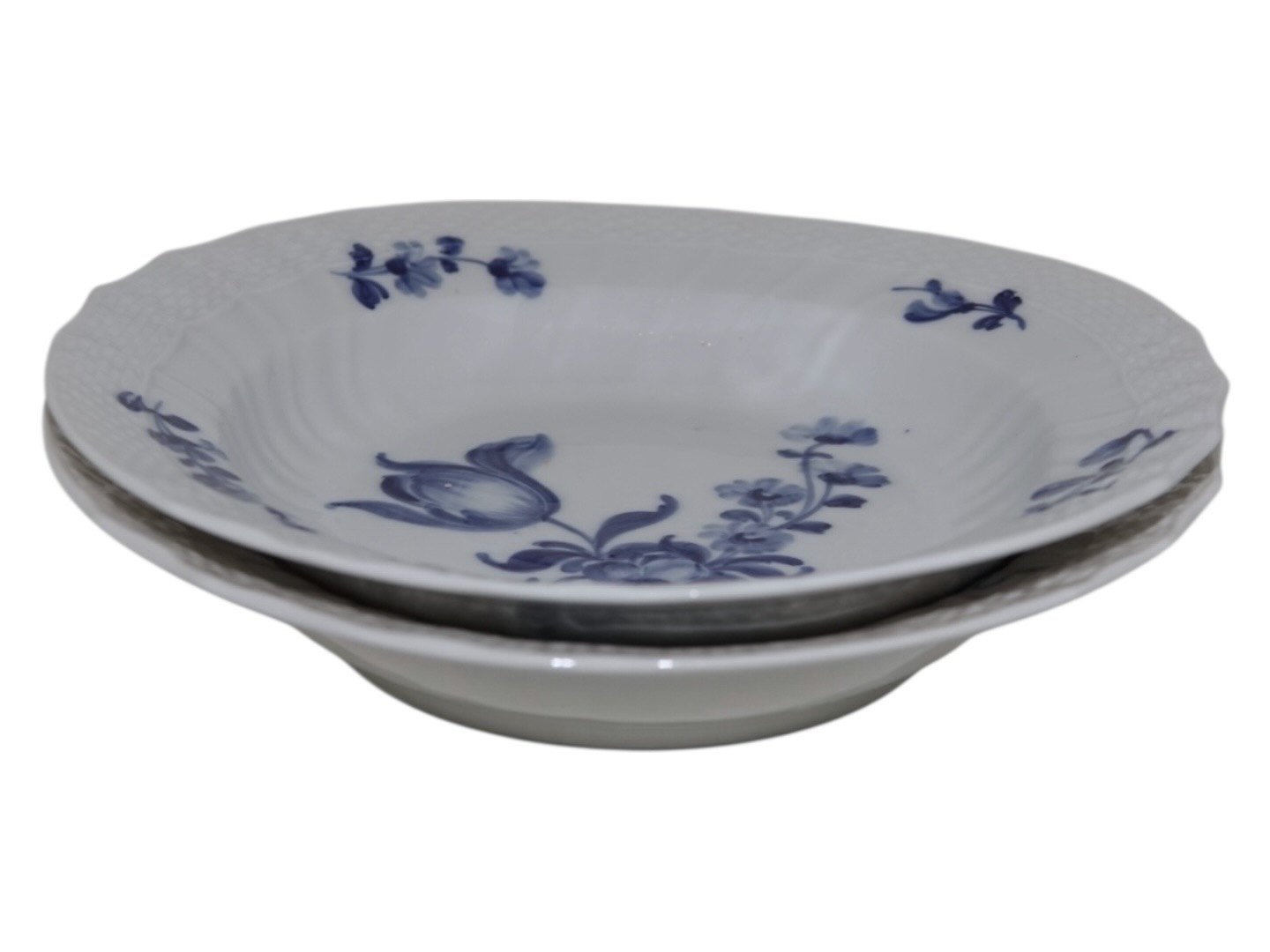 Beskrivelse: Royal Copenhagen Blå Blomst Svejfet, ekstra lille dyb tallerken.