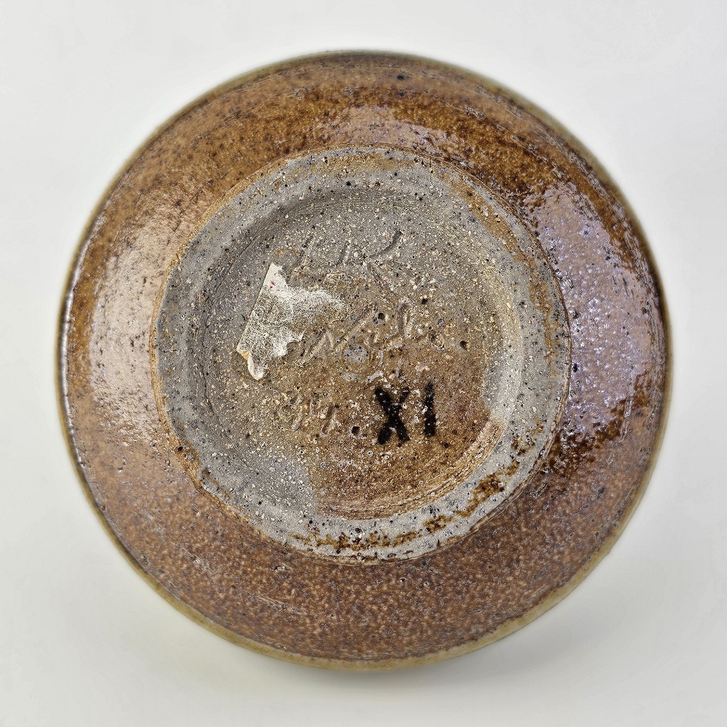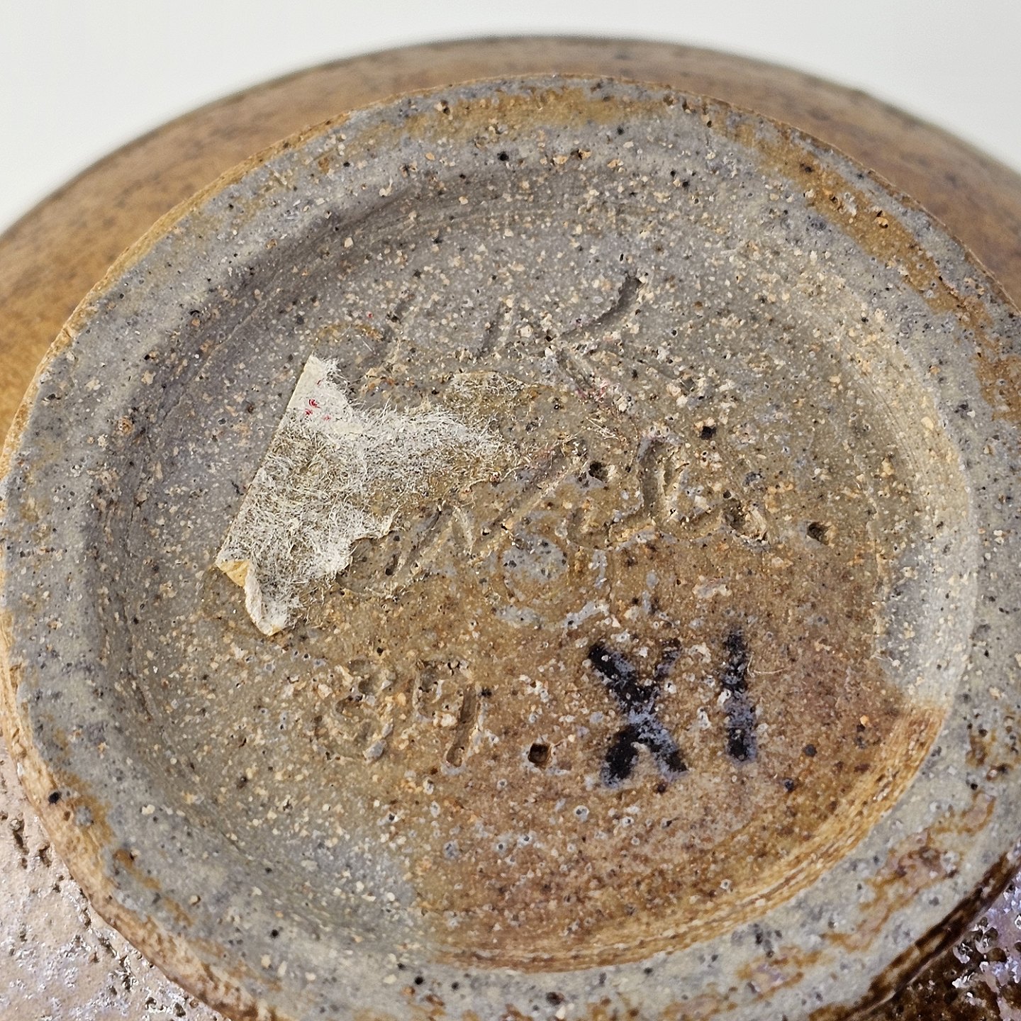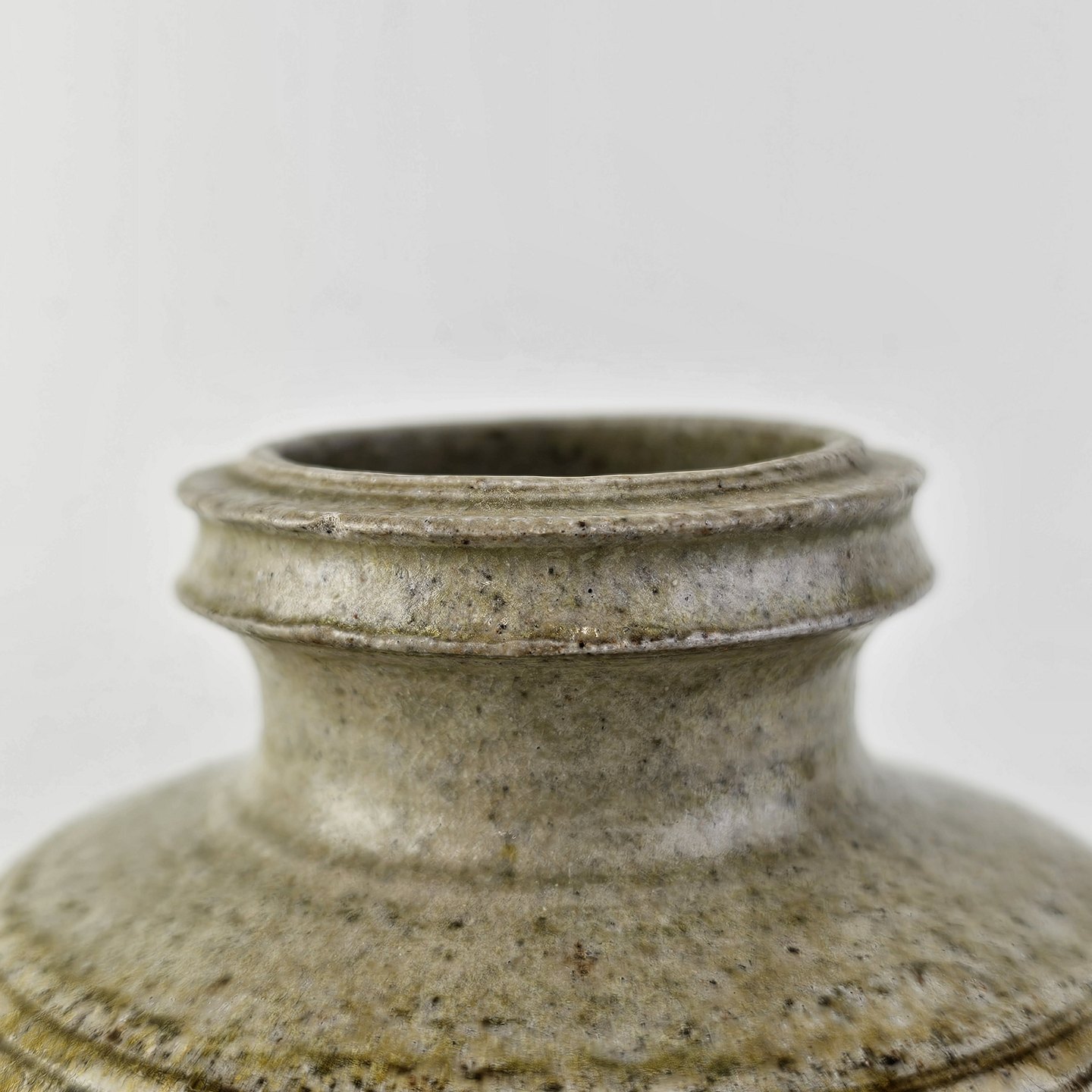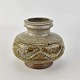 Beskrivelse: Vase smal fod og top i grålig/brunlig glasur
