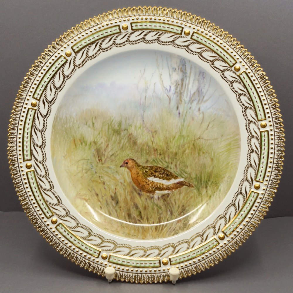Beskrivelse: Royal Copenhagen, Flora Danica jagt porcelæn; Fauna Danica middagstallerken nr. 3549.