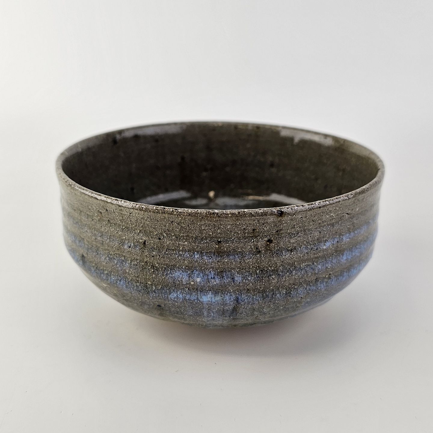 Beskrivelse: Lille skål med Grønblå glasur med krakeleringer