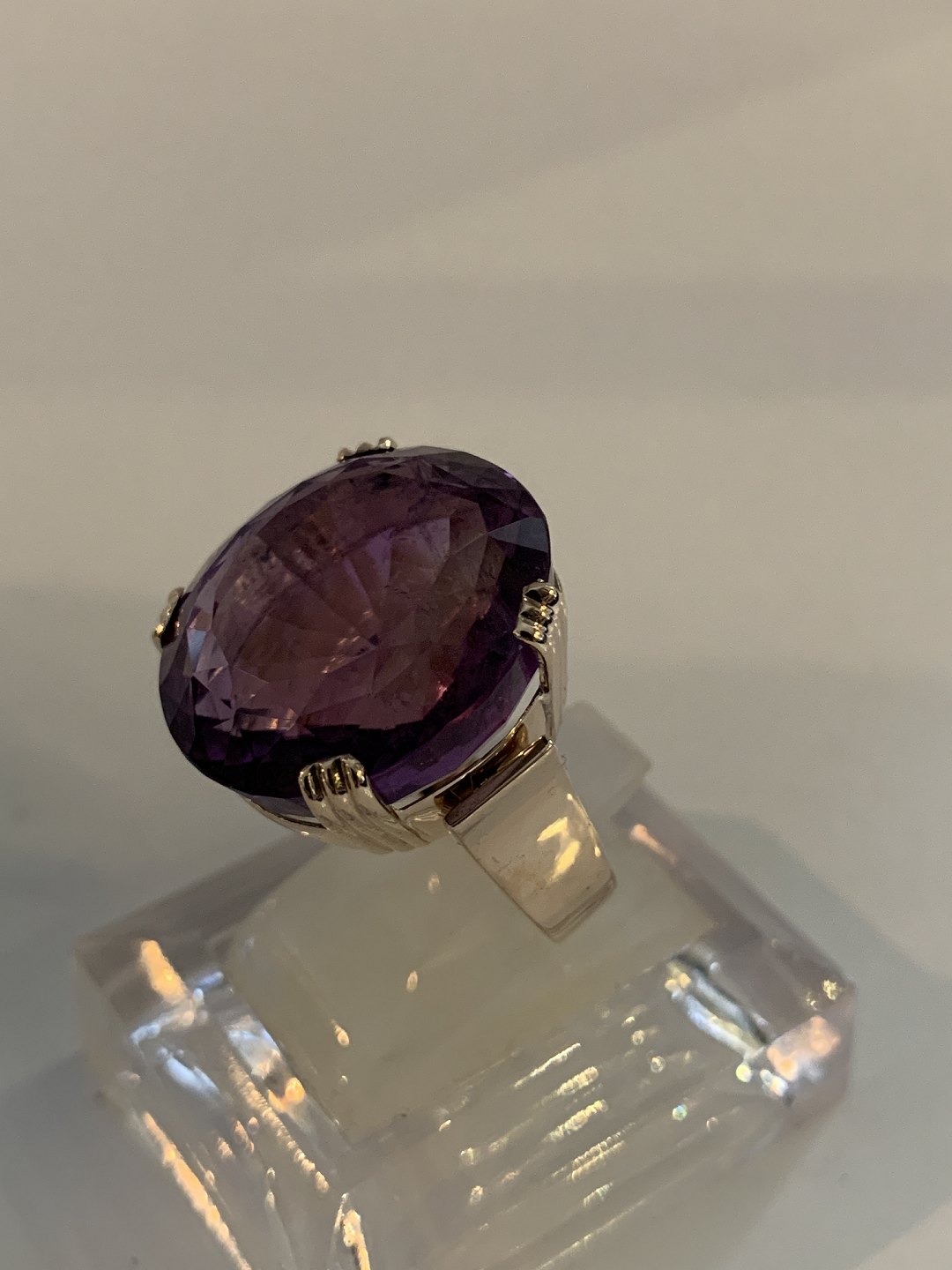 Vintage Damering med en stor ametyst 12 Karat Guld