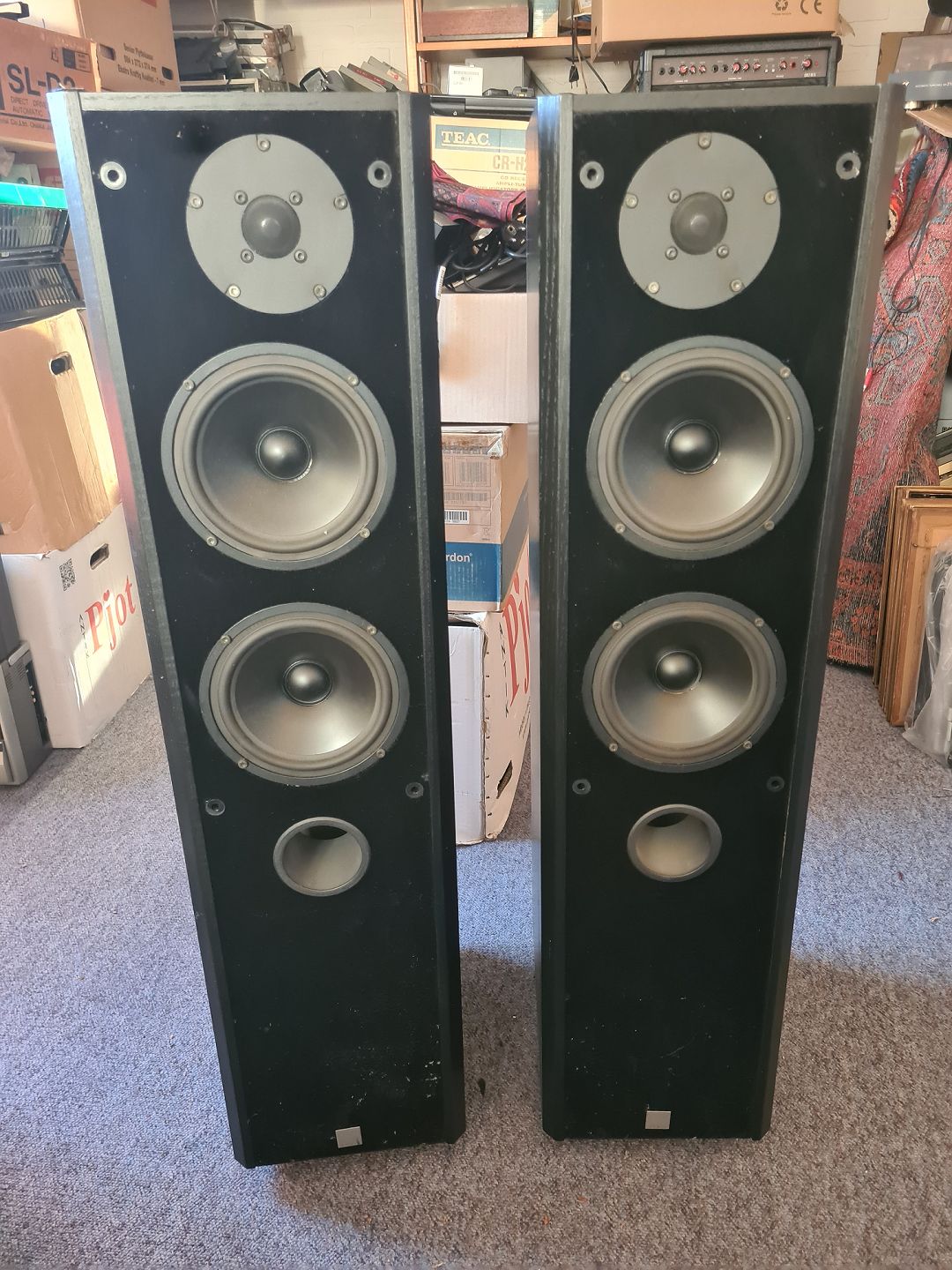 Beskrivelse: Højtalerpar fra DALI model 400. Testet og lyder fint. Fremstår dog med lidt skrammer på kabinetterne. (Billede)