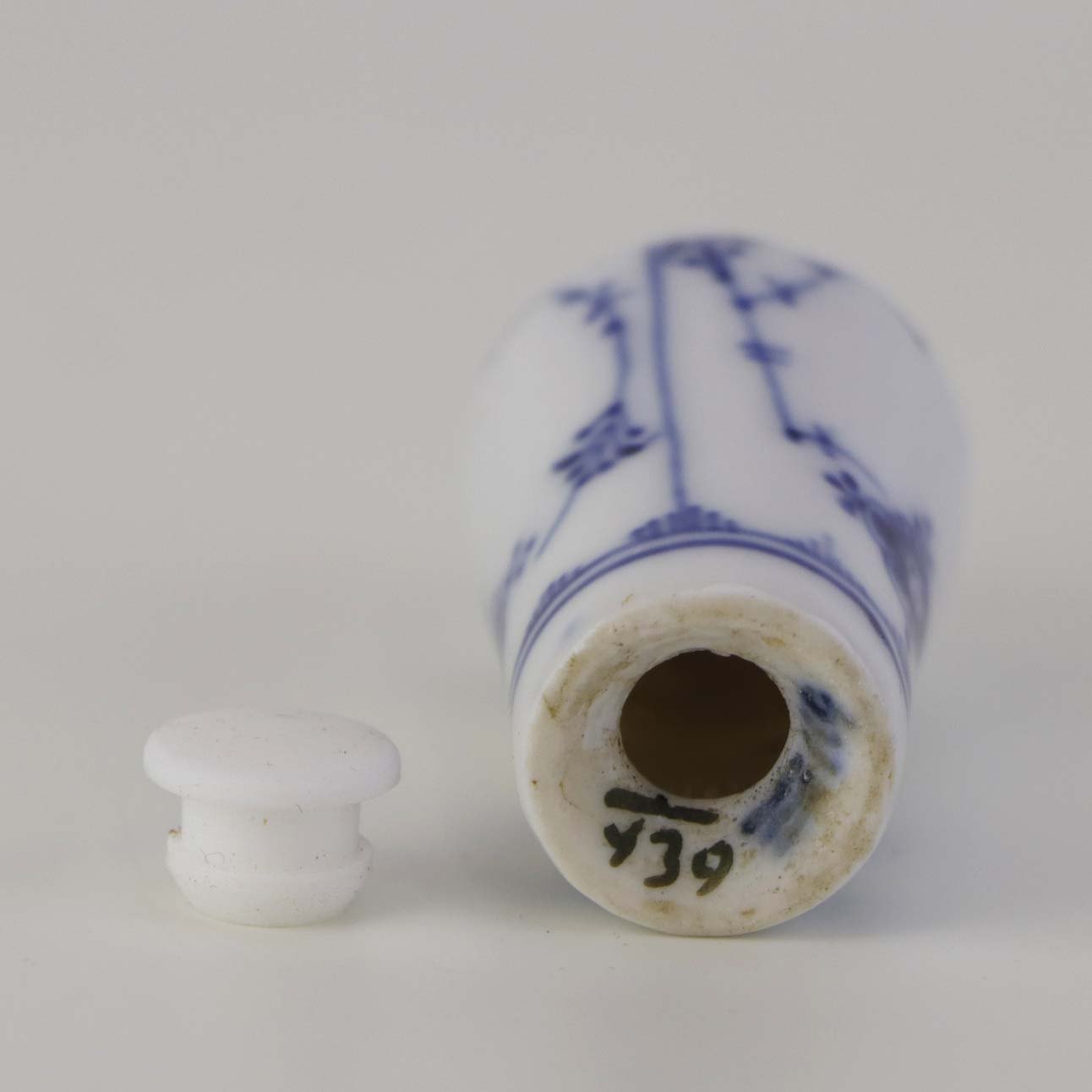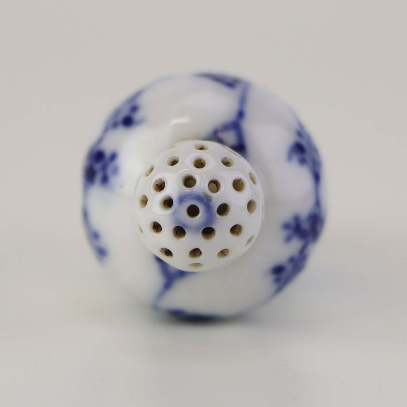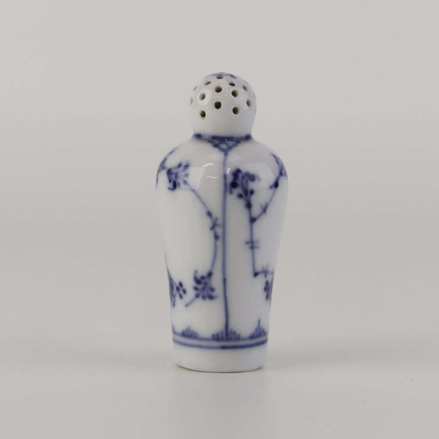 Beskrivelse: Mindre strø til peber i kongelig porcelæn fra stellet Musselmalet riflet. Nr. 1/439