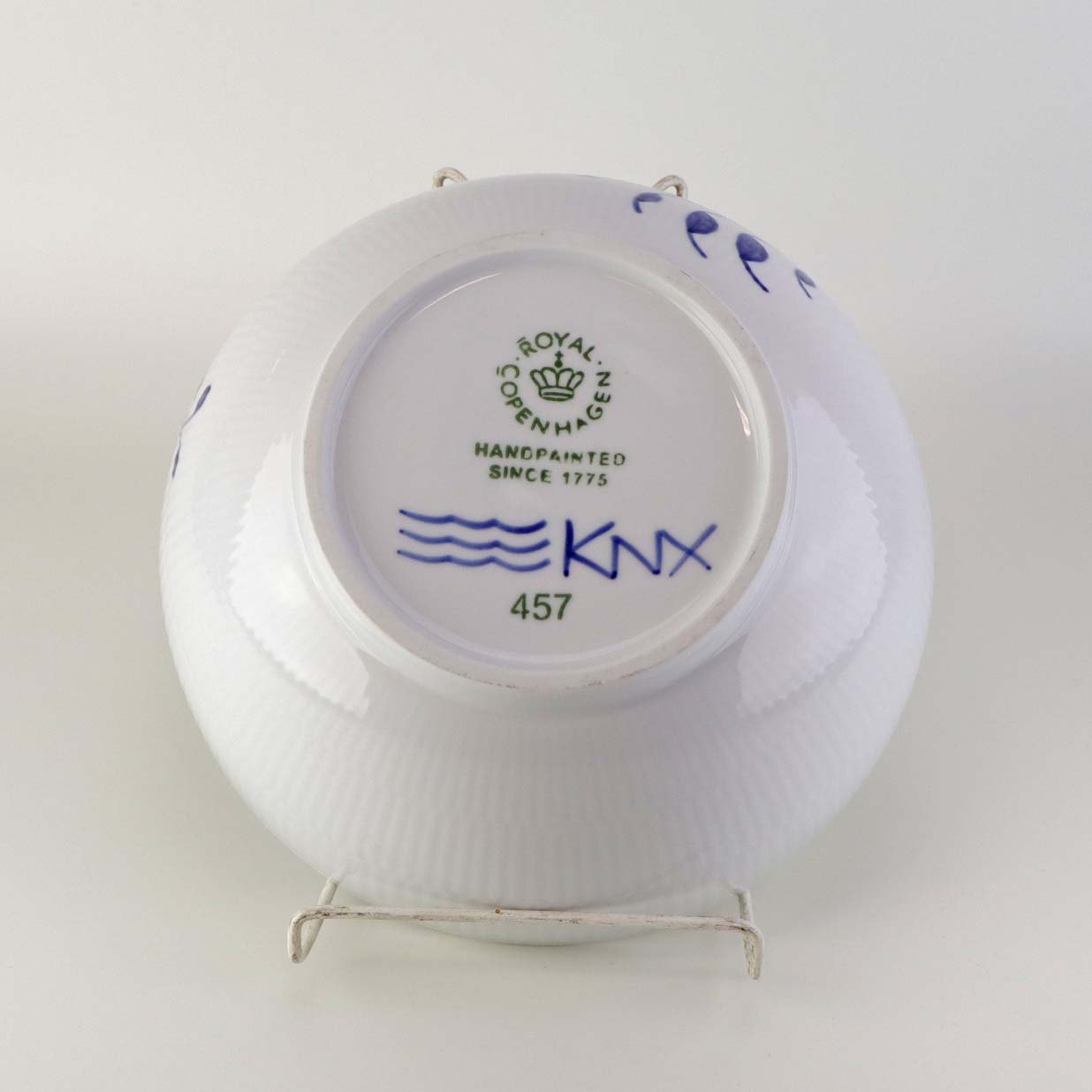 Beskrivelse: Skål i kongelig porcelæn fra stellet Blå Mega Riflet. Nr. 457