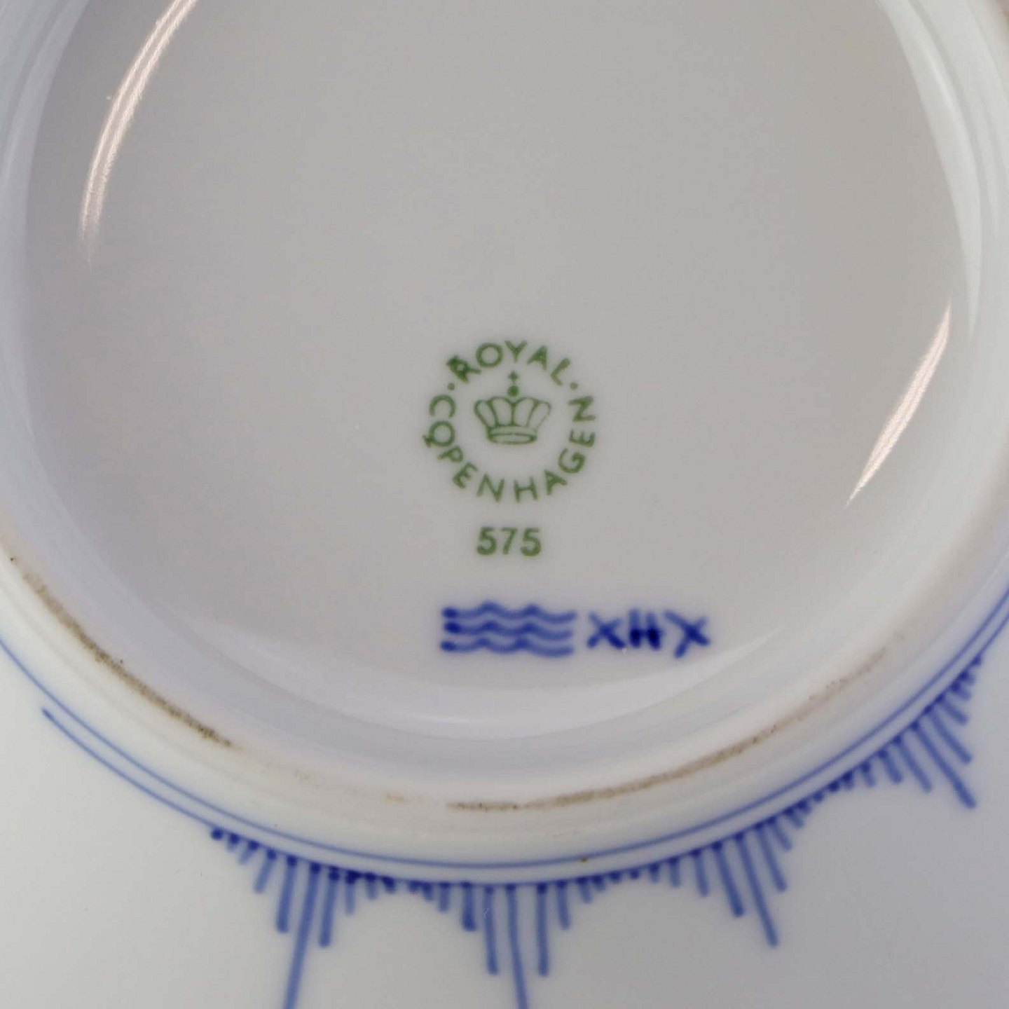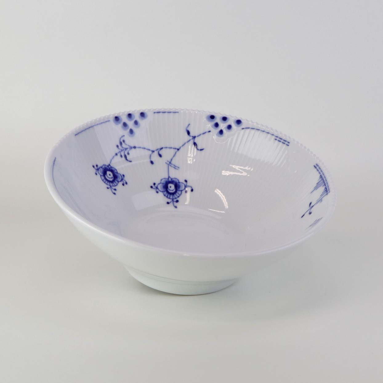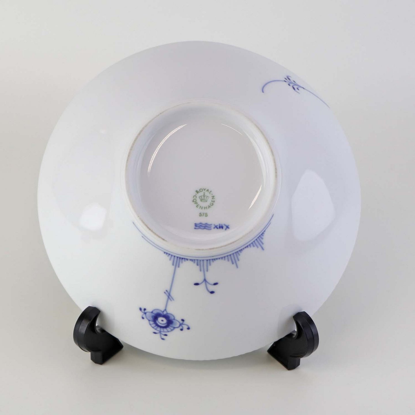 Beskrivelse: Morgenskål i kongeligt porcelæn fra stellet Blå Elements. Nr. 575