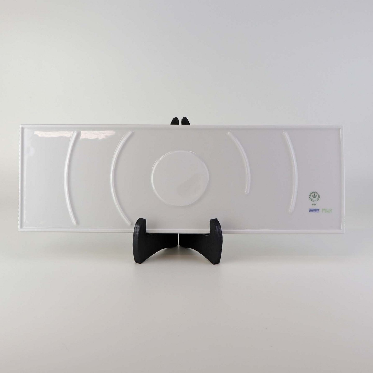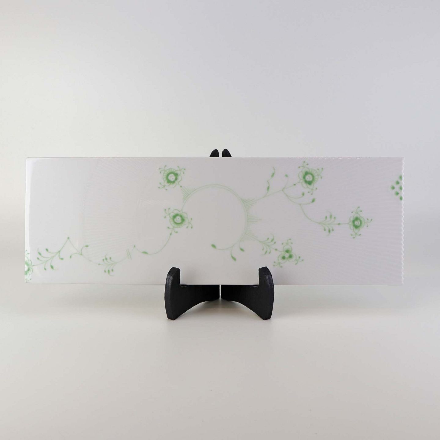 Beskrivelse: Serveringsbrad med grønt mønster i kongeligt porcelæn fra stellet Multifarvet Elements. Nr. 884