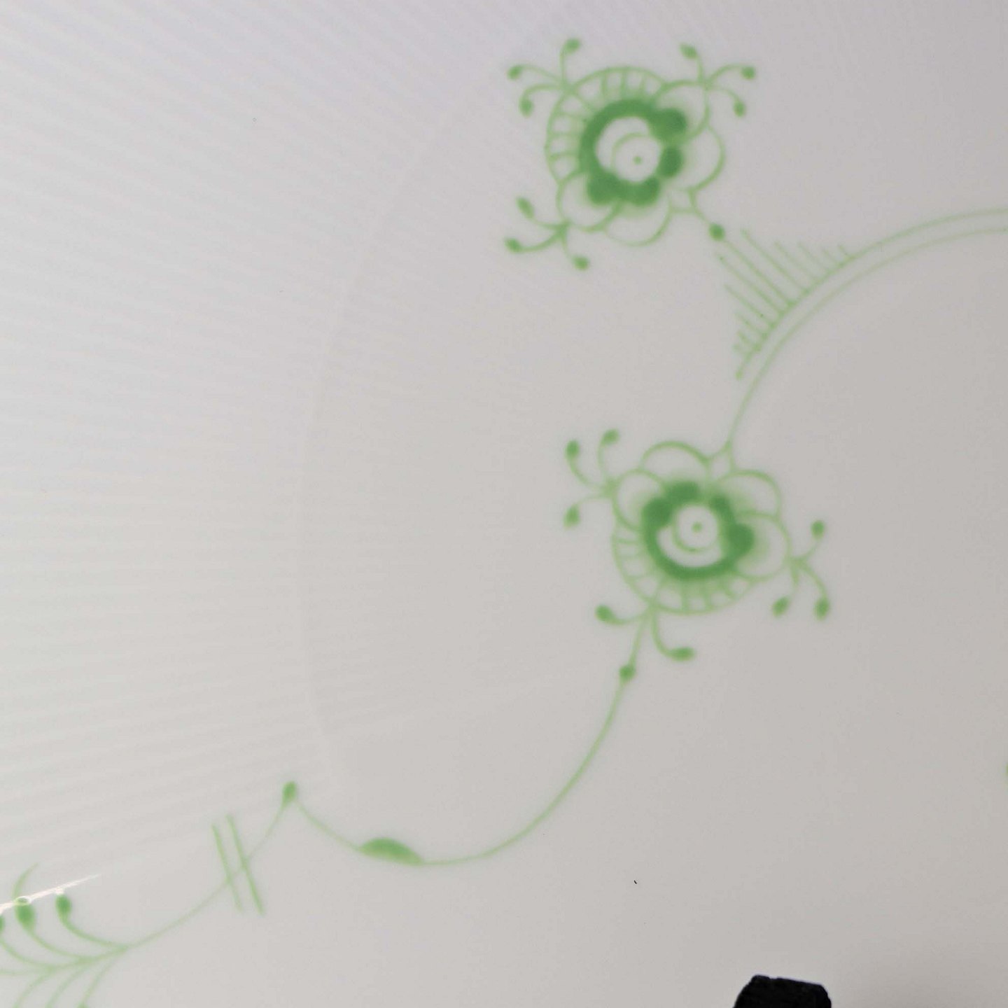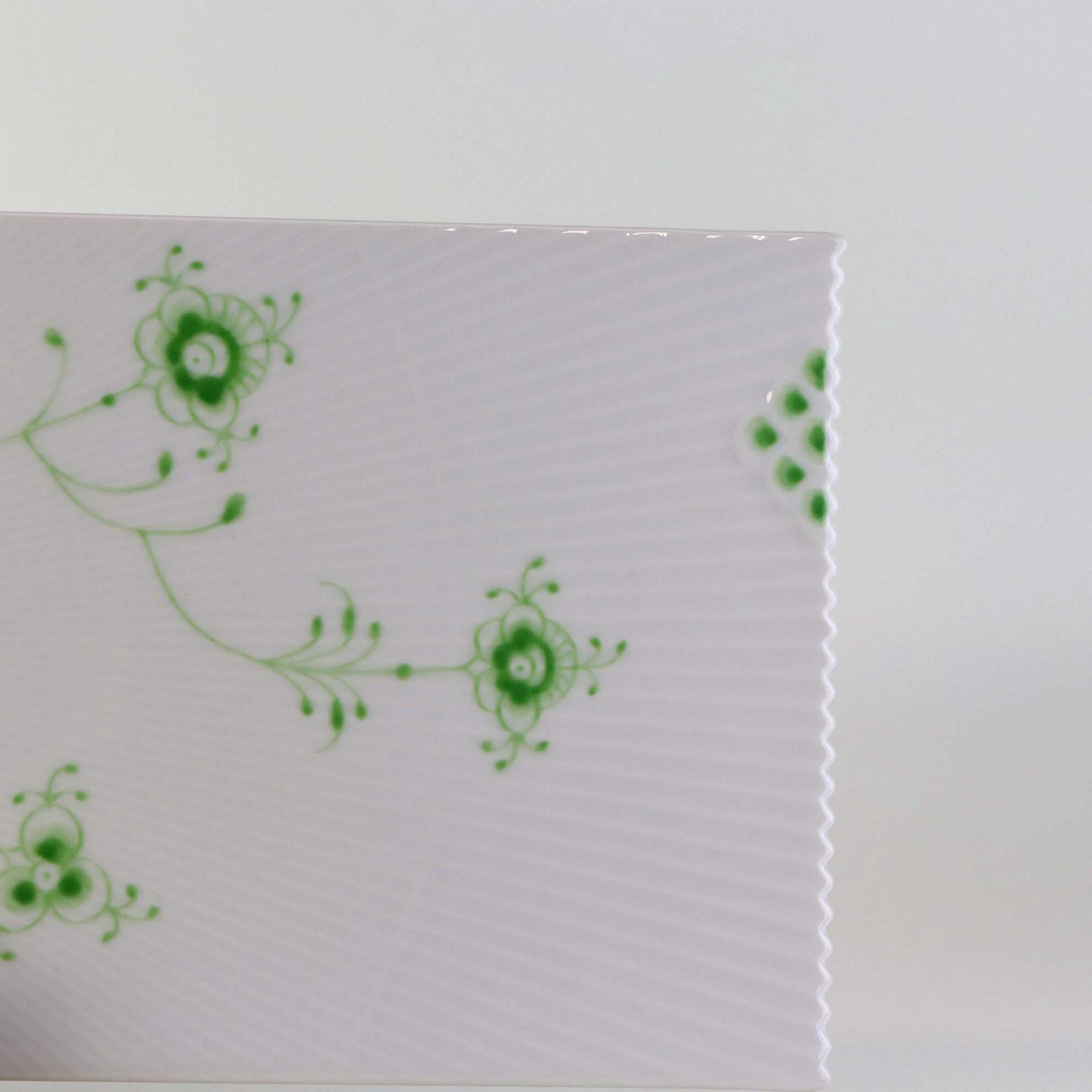 Service i glat porcelæn med let riflet kant og grøn dekoration