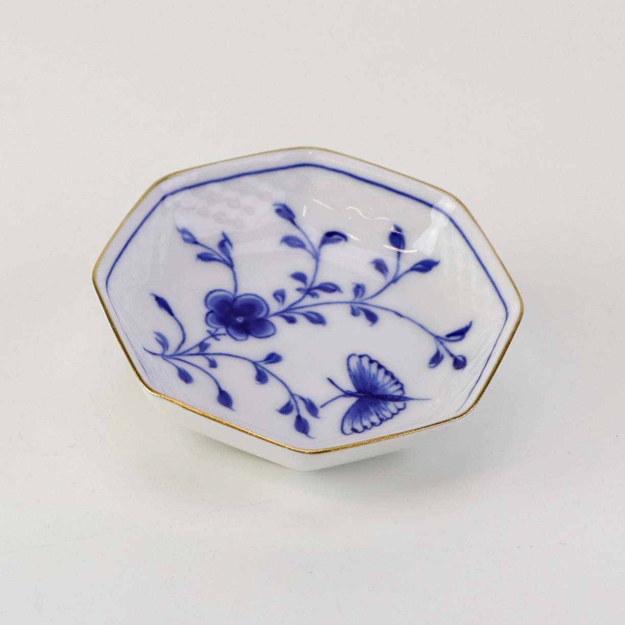 Kipling er magen til sommerfuglestellet, blot med guldkant. Stellet er dekoreret med blå grene, blade og blomster. På nogle dele af stellet ses også en sommerfugl.