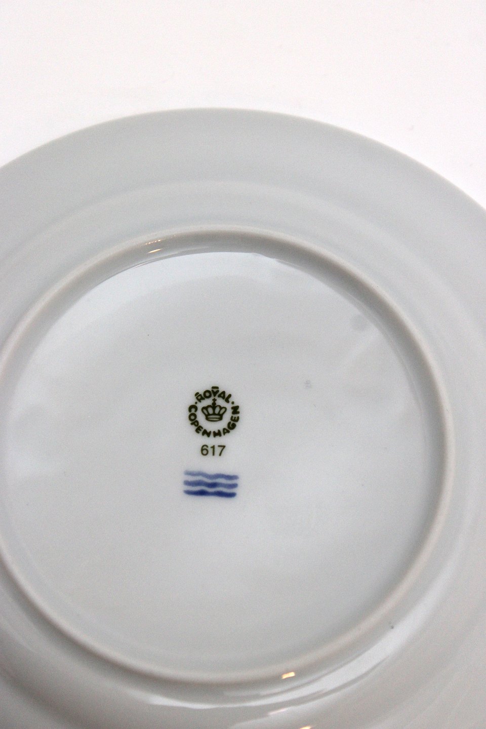 Beskrivelse: Royal Copenhagen, Blå Magnolia. Blå marmoreret bort dekoreret med gylden blomsterknop. Designet af Flemming Eskildsen. Stor kagetallerken. Diameter 17 cm. Nr. 617. I. sortering. Pris: 50 kr. stk. Lager: 6