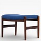 Footstool in patinated rosewood upholstered in blue wool.