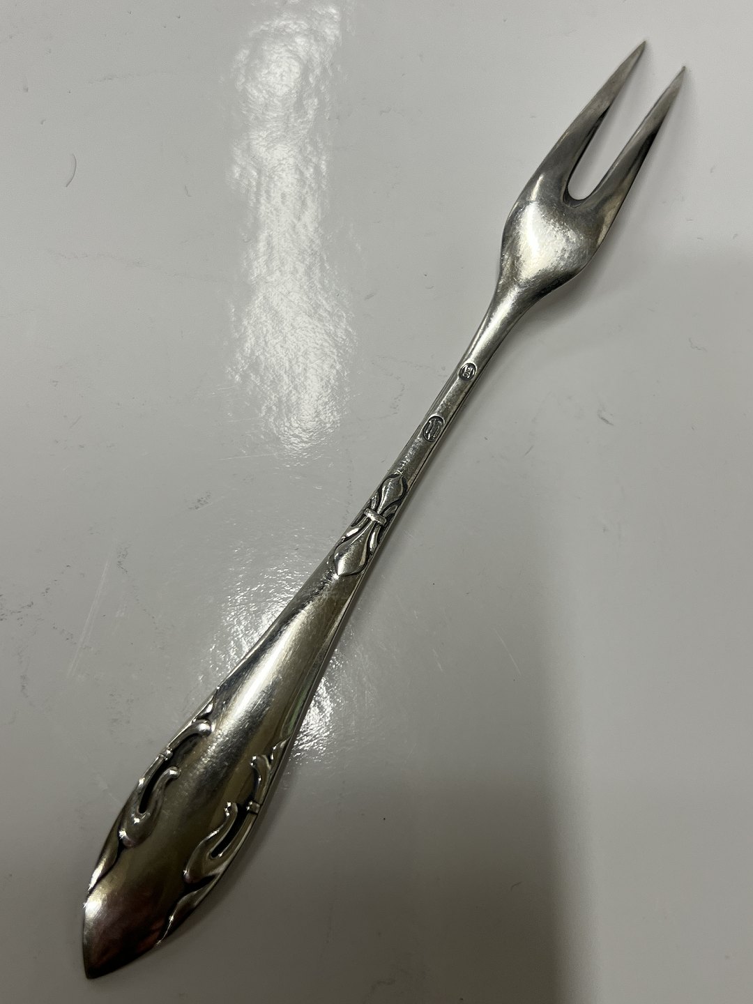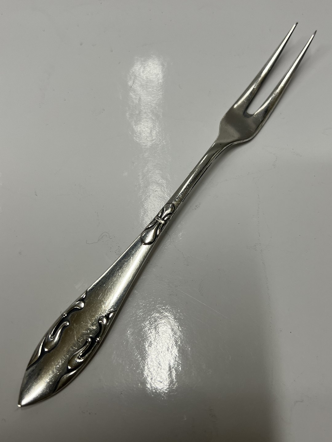 Beskrivelse: Delt Lilje Pålægsgaffel i Sølv Frigast