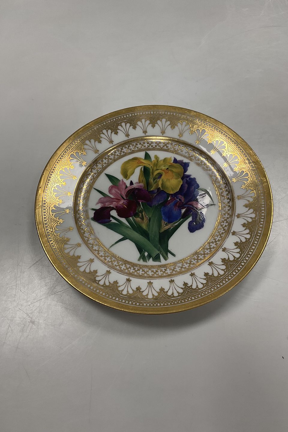 Royal Copenhagen Antik Tallerken med Blomster Motiv og guld. Signeret af Christian Klein fra 1820-1850