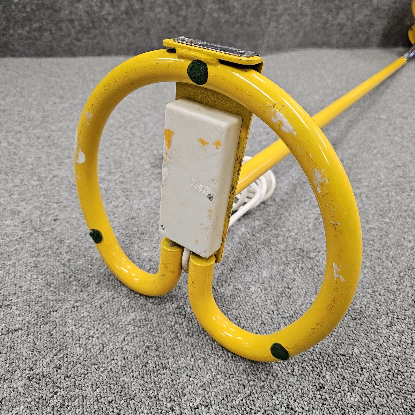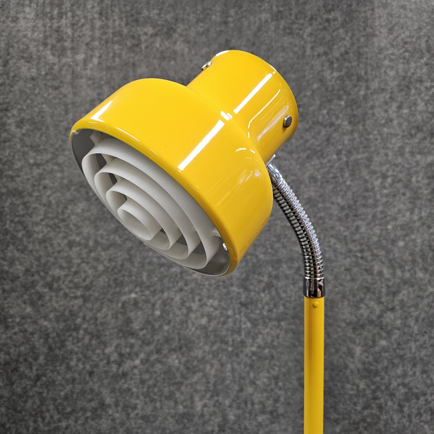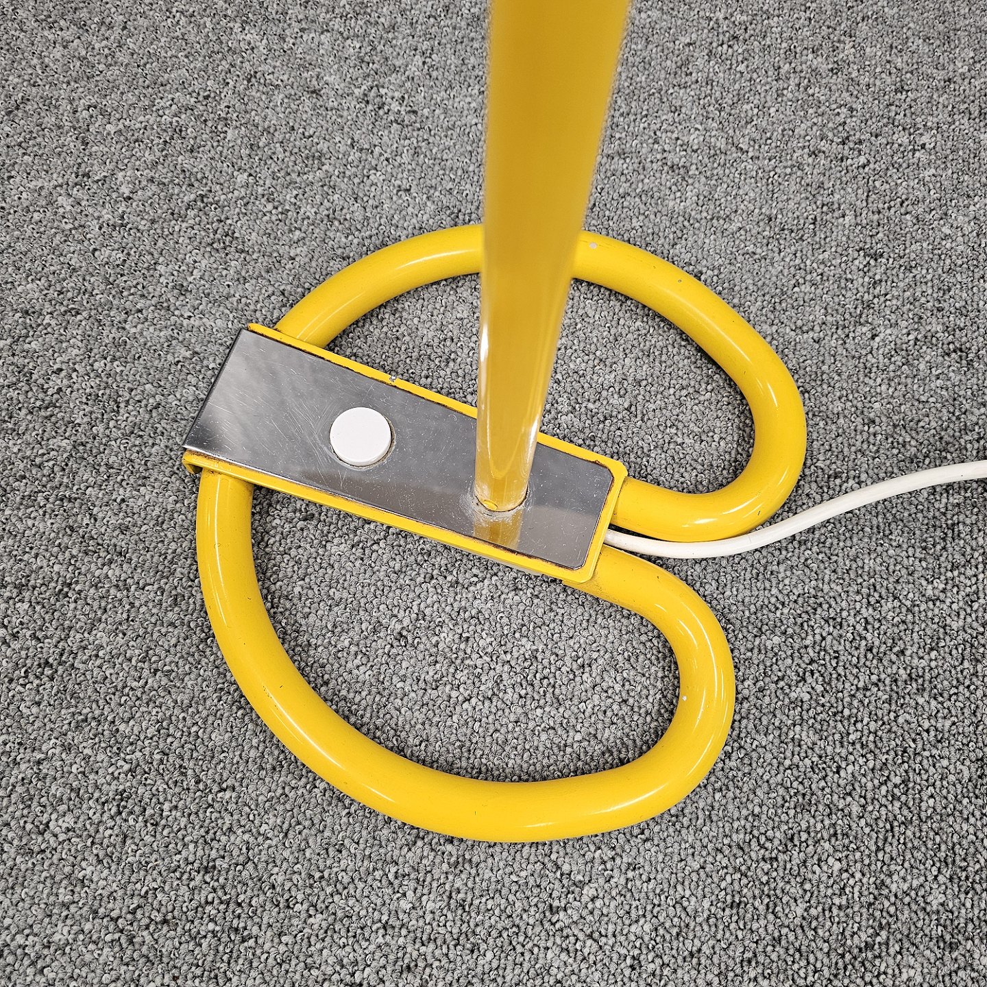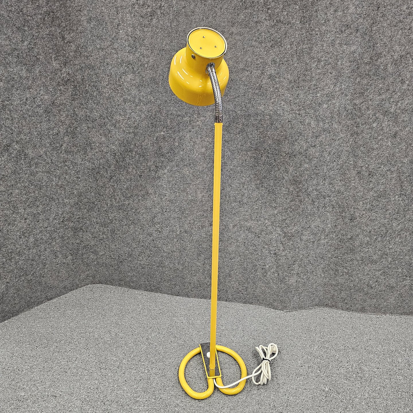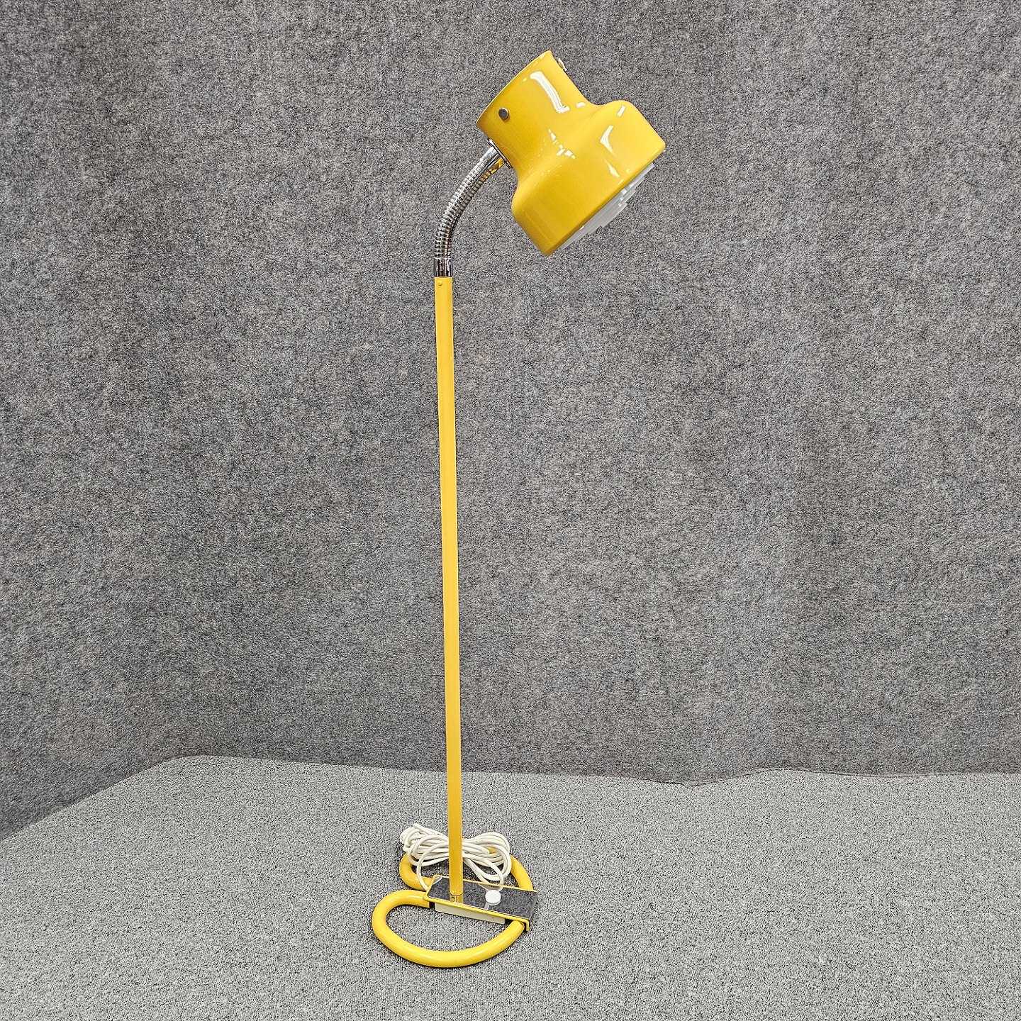 Beskrivelse: Bumling gulvlampe i gult lakeret metal med justerbar skærm