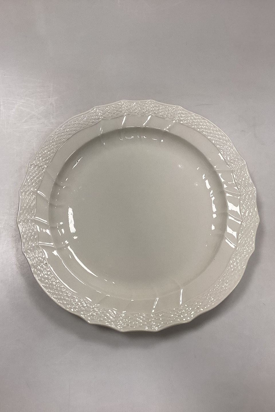 Beskrivelse: Royal Copenhagen Josephine Creme Rundt Fad. Måler 33 cm / 13 in.