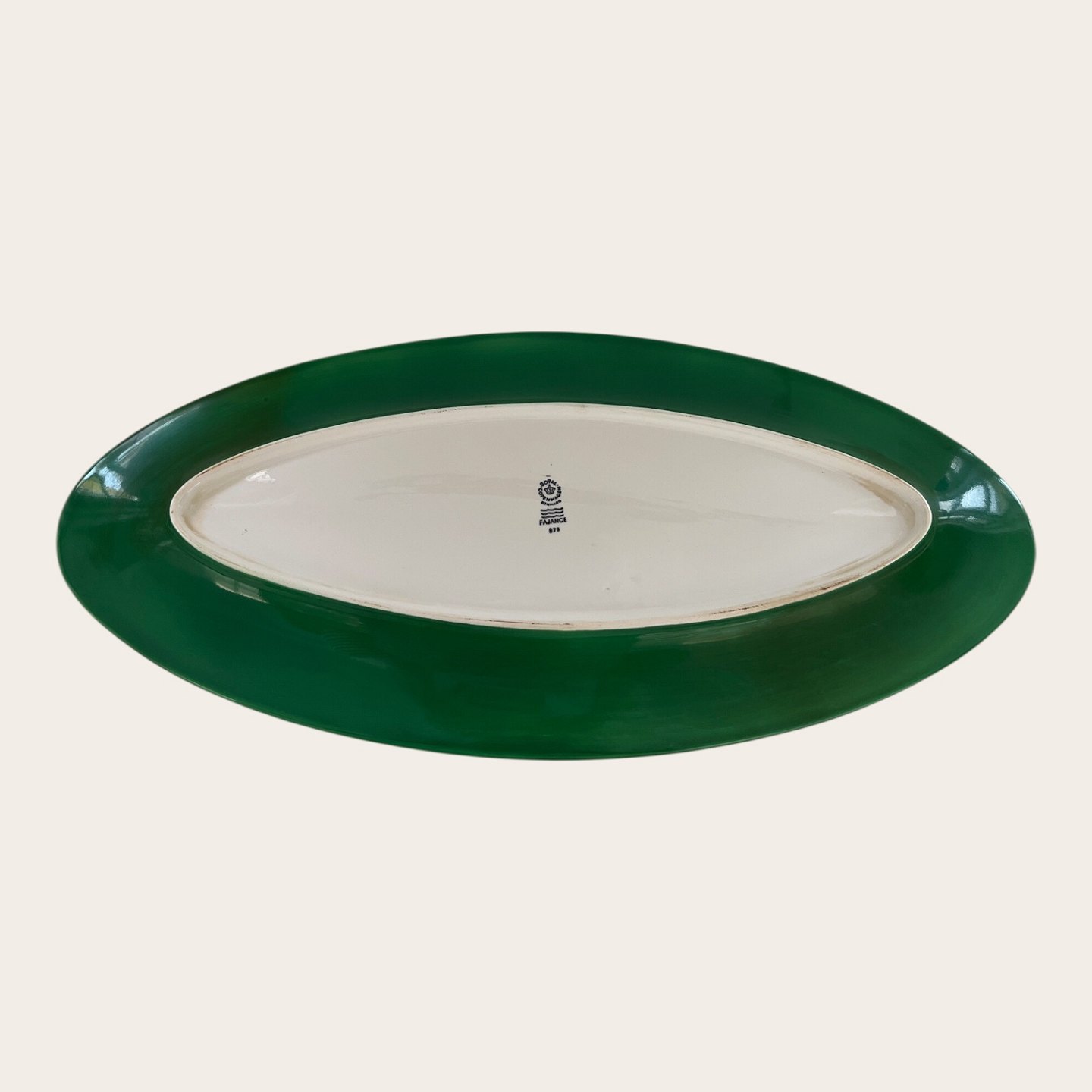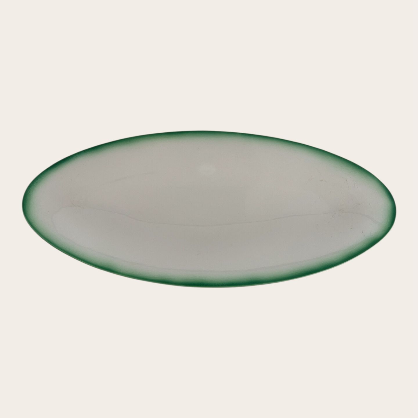 Beskrivelse: Royal Copenhagen, Aluminia, Ursula, Stort fad, Grøn/ hvid #375, 1. sortering, 57,5cm lang, 26cm bred, Design Ursula Munch Petersen *Pæn stand med lettere brugsspor*