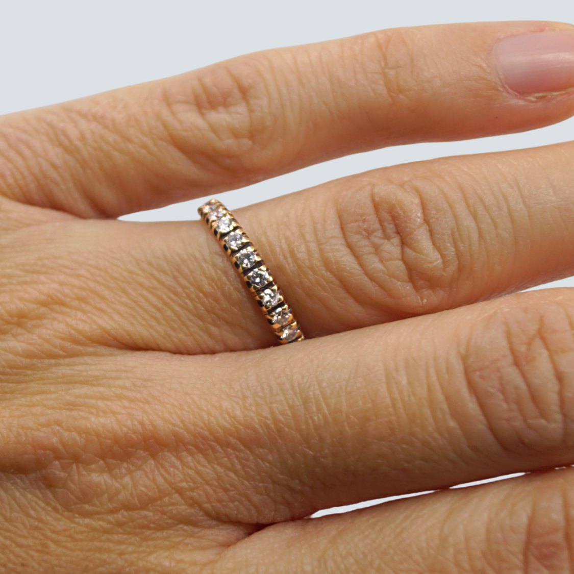 Beskrivelse: Erik Graugaard; Ring i 14 kt. guld, prydet med 12 diamanter, i alt 0.36 ct. Wesselton VS. Ring str. 53.