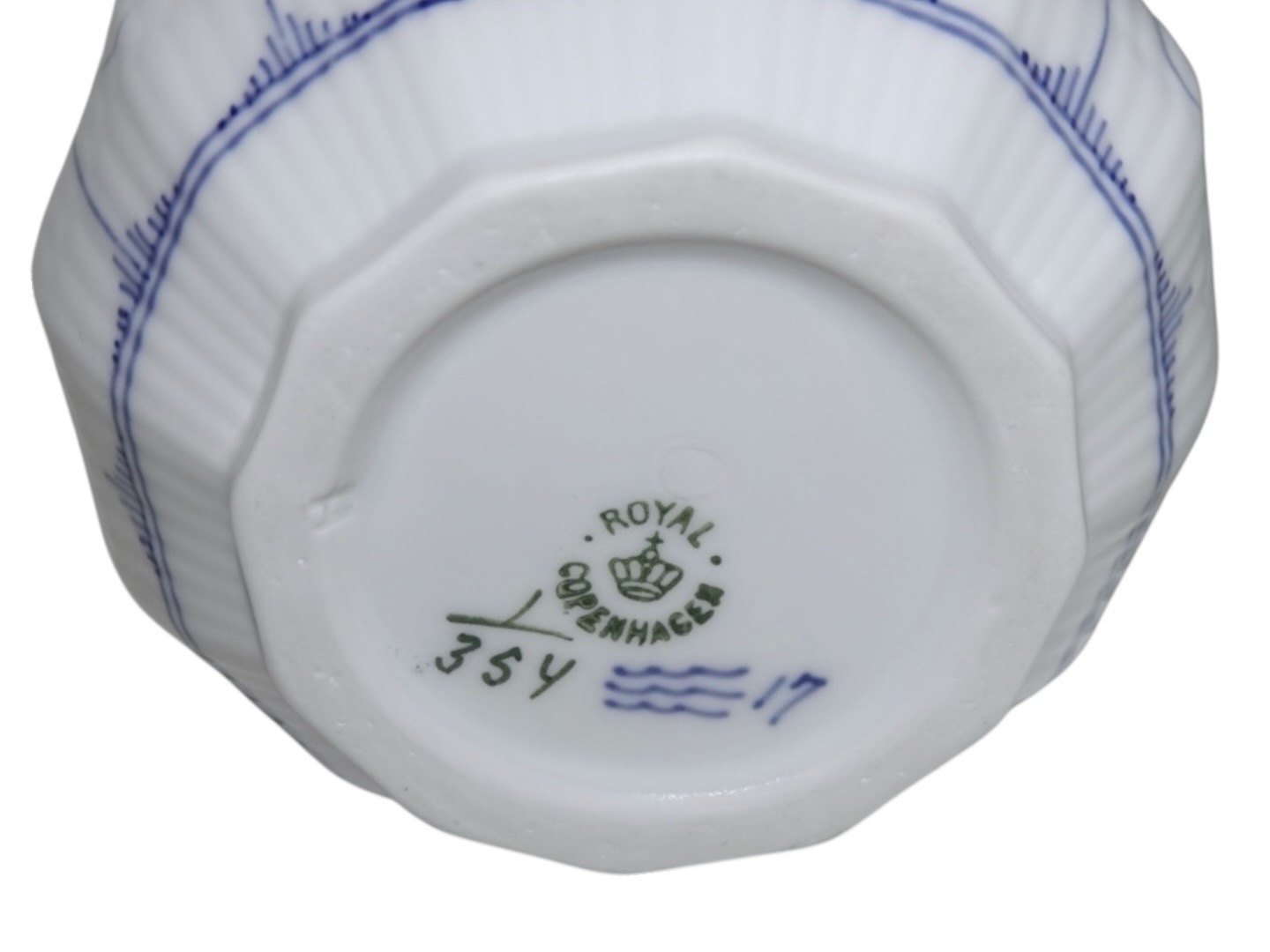 Beskrivelse: Kongelig Musselmalet Riflet, lille mælkekande.