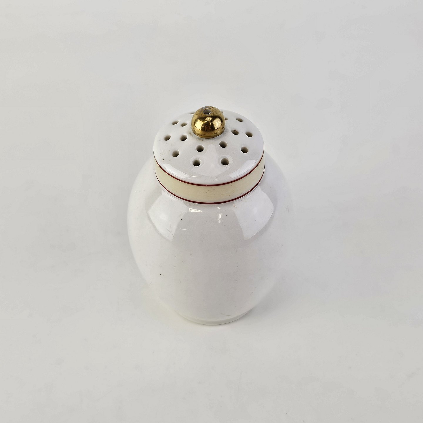 Beskrivelse: Saltbøsse eller peberbøsse i kongeligt porcelæn fra stellet Det spanske stel. Prop medfølger.