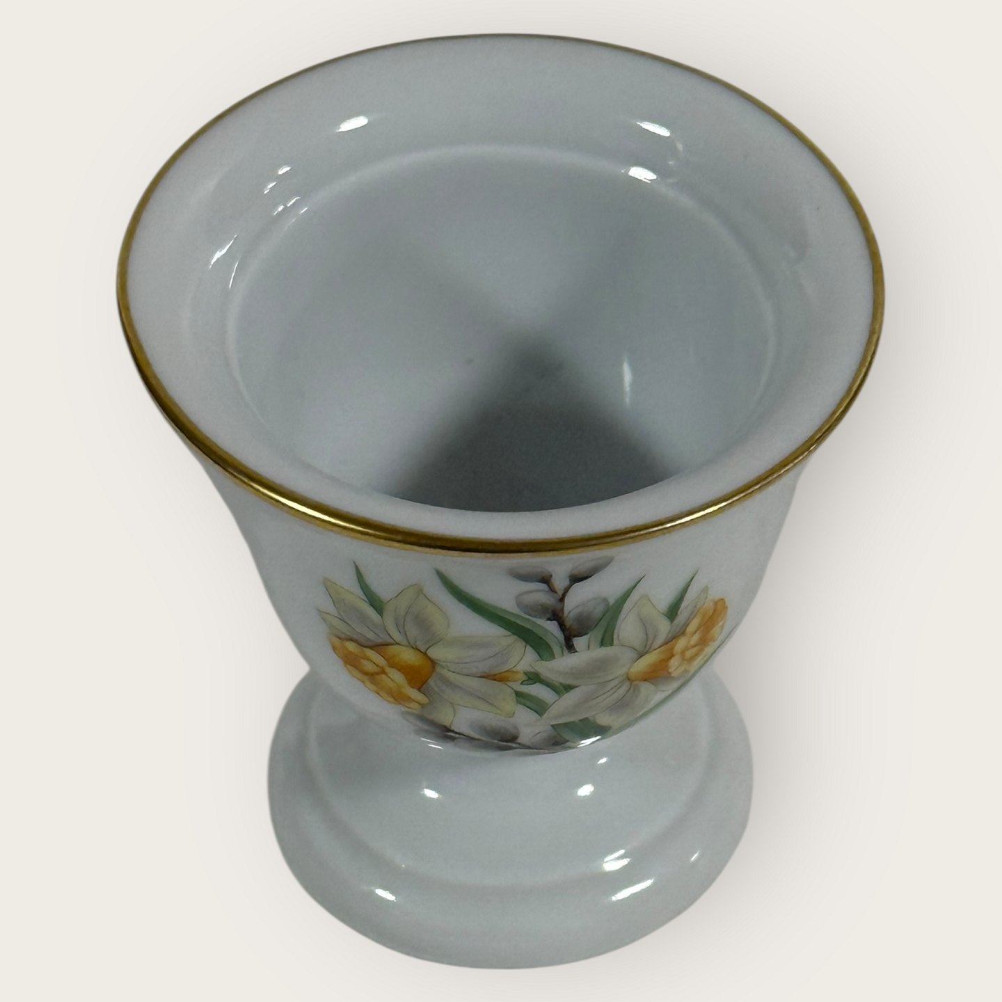 Beskrivelse: Bing & Grøndahl, Æggebæger med pinseliljer og pilegrene, Højde 5,8cm *pæn stand*