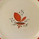 Beskrivelse: Flad middagstallerken i fajance fra stellet Silkeborg fremstillet i perioden 1937-1939