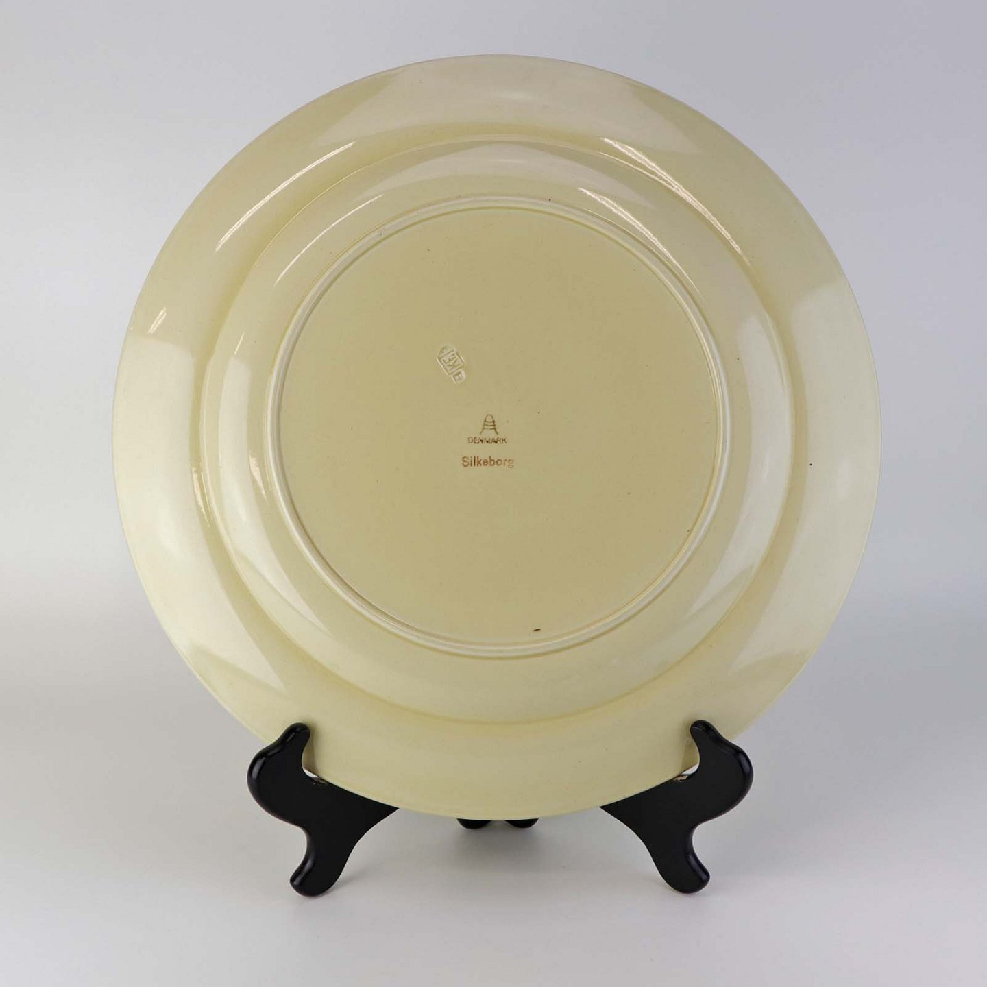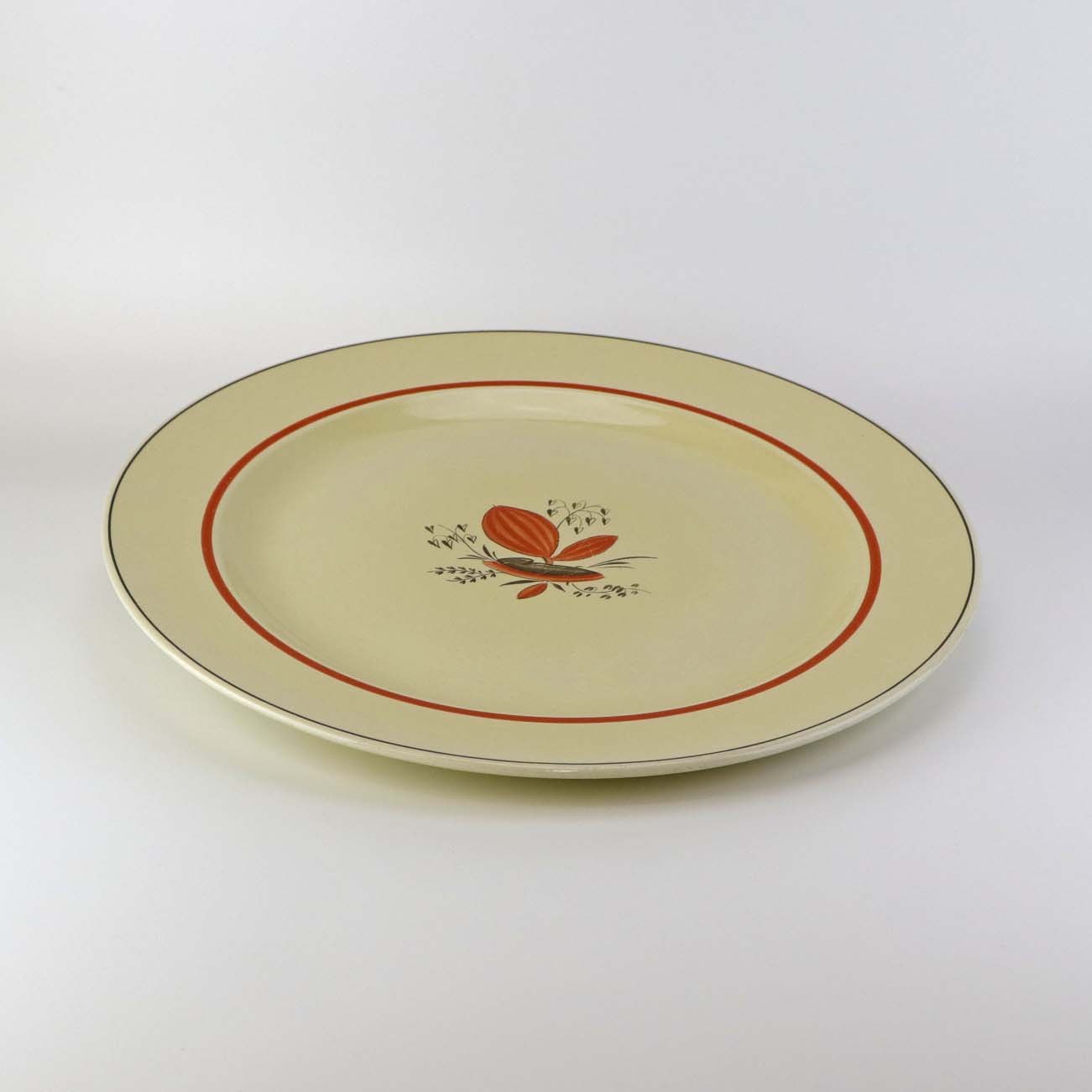 Beskrivelse: Rundt serveringsfad i fajance fra stellet Silkeborg fremstillet i perioden 1937-1939