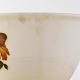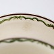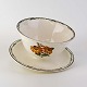 Fajancestel i stelform G med dekoration af orangegule blomster og grønne guirlander på lys baggrund med brun kant.