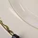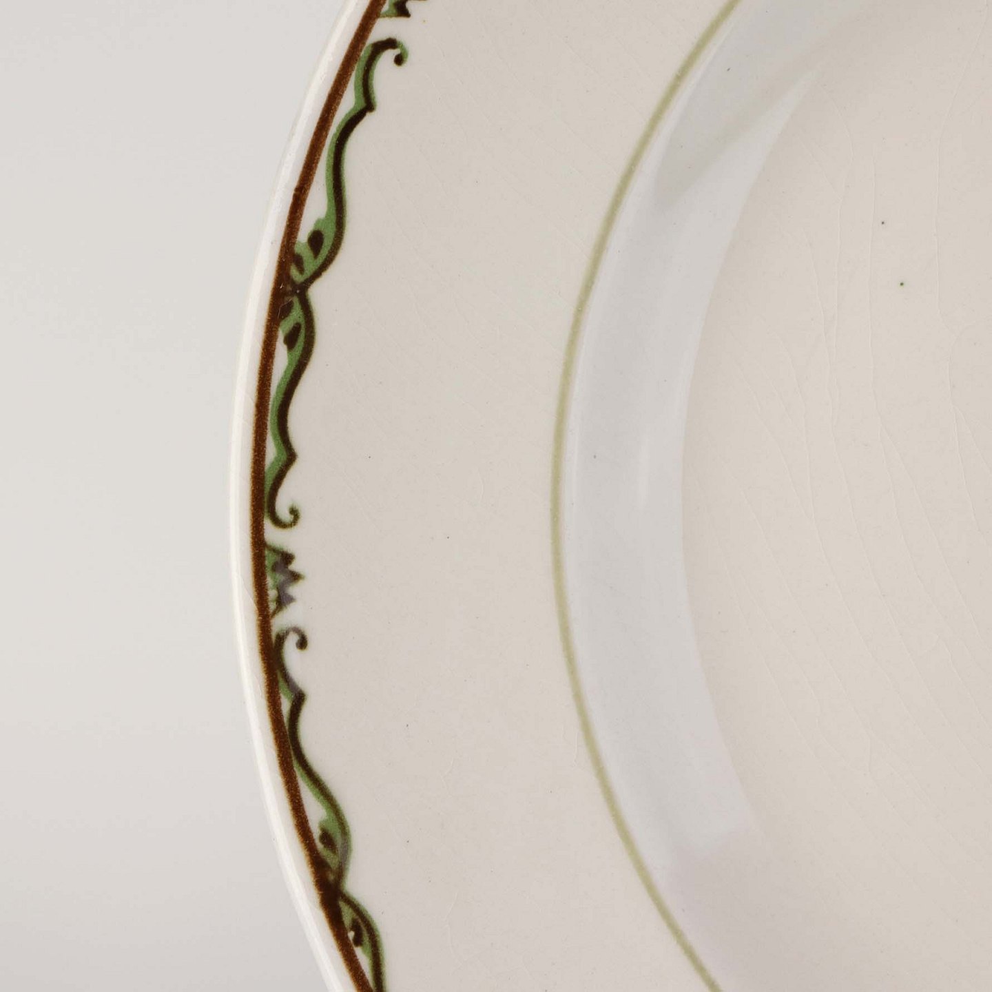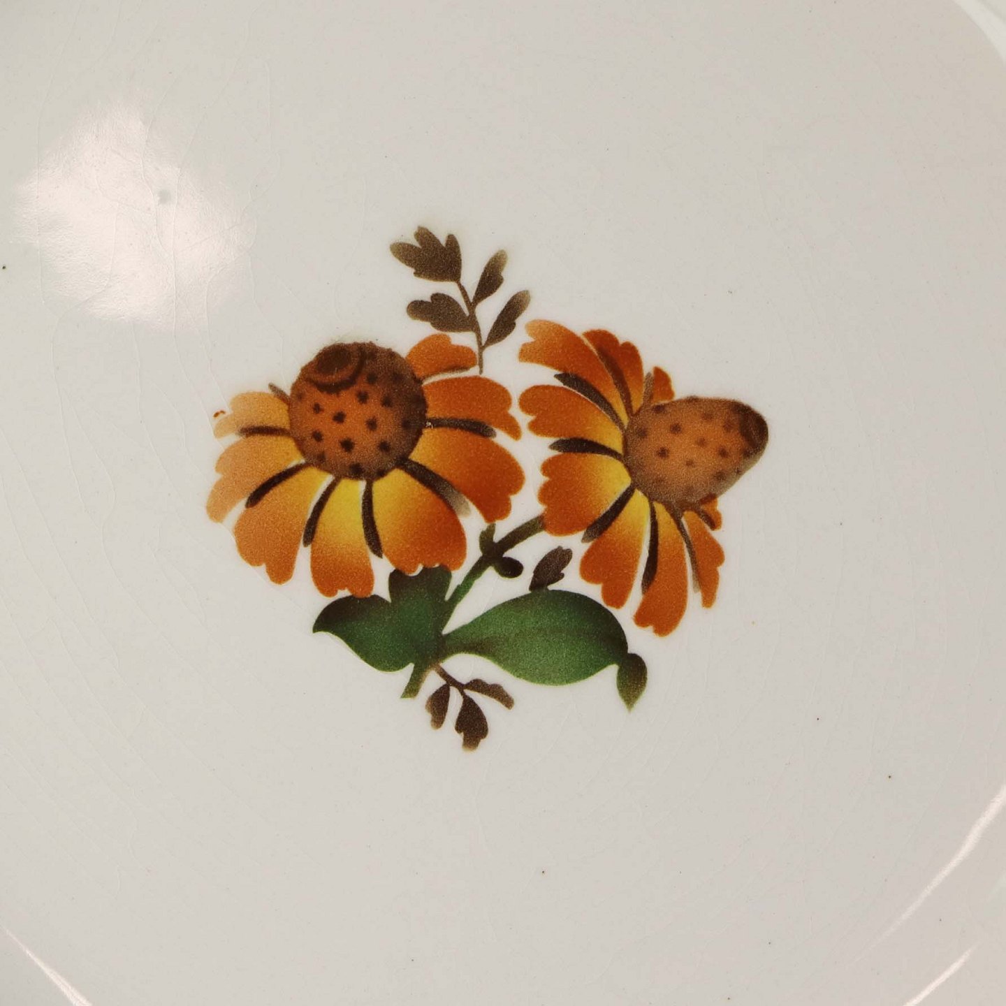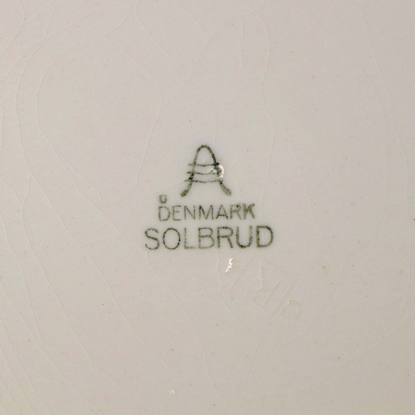 Beskrivelse: Middagstallerken i fajance fra stellet Solbrud fremstillet i perioden 1937-1967