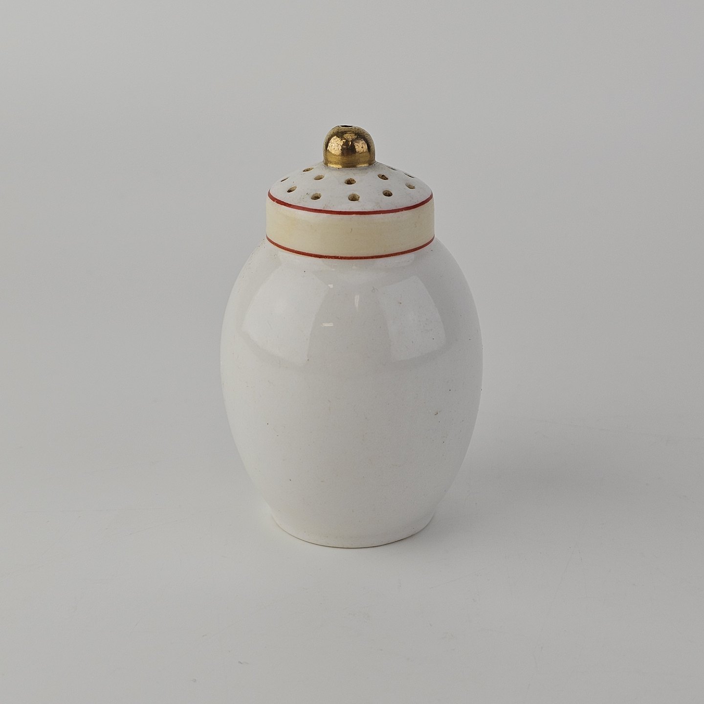 Beskrivelse: Saltbøsse eller peberbøsse i kongeligt porcelæn fra stellet Det spanske stel. Mangler prop
