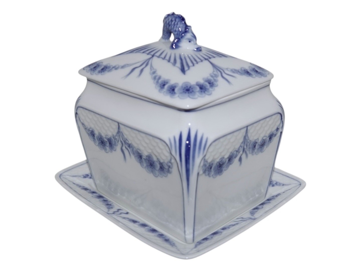 Beskrivelse: Bing & Grøndahl Empire, sjælden kiksespand med tilhørende underfad.