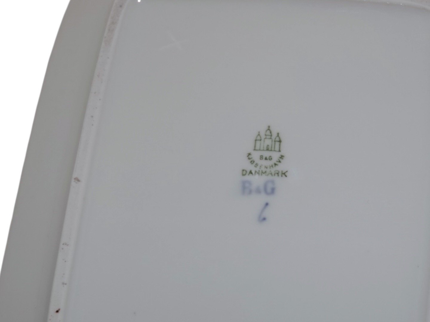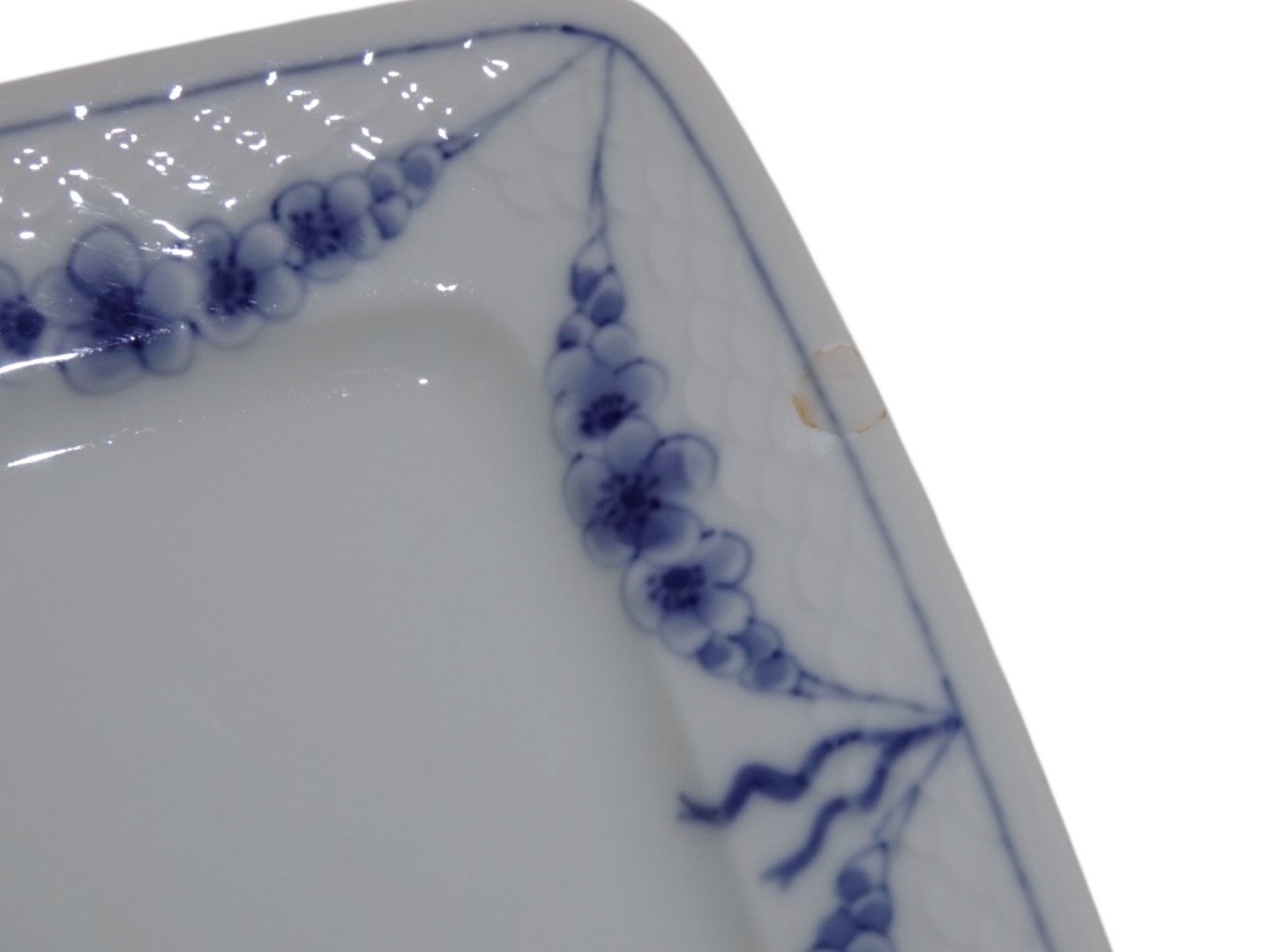 Der er tre skår på toppen af låget samt et pålimet skår på underfadet, se nærbilleder, ellers fejlfri.