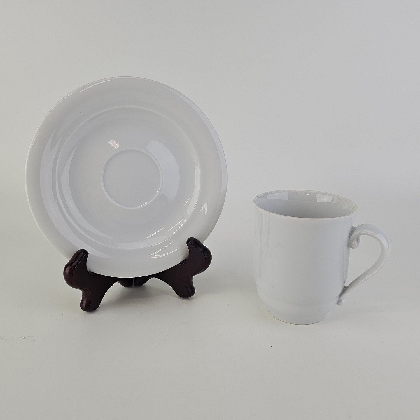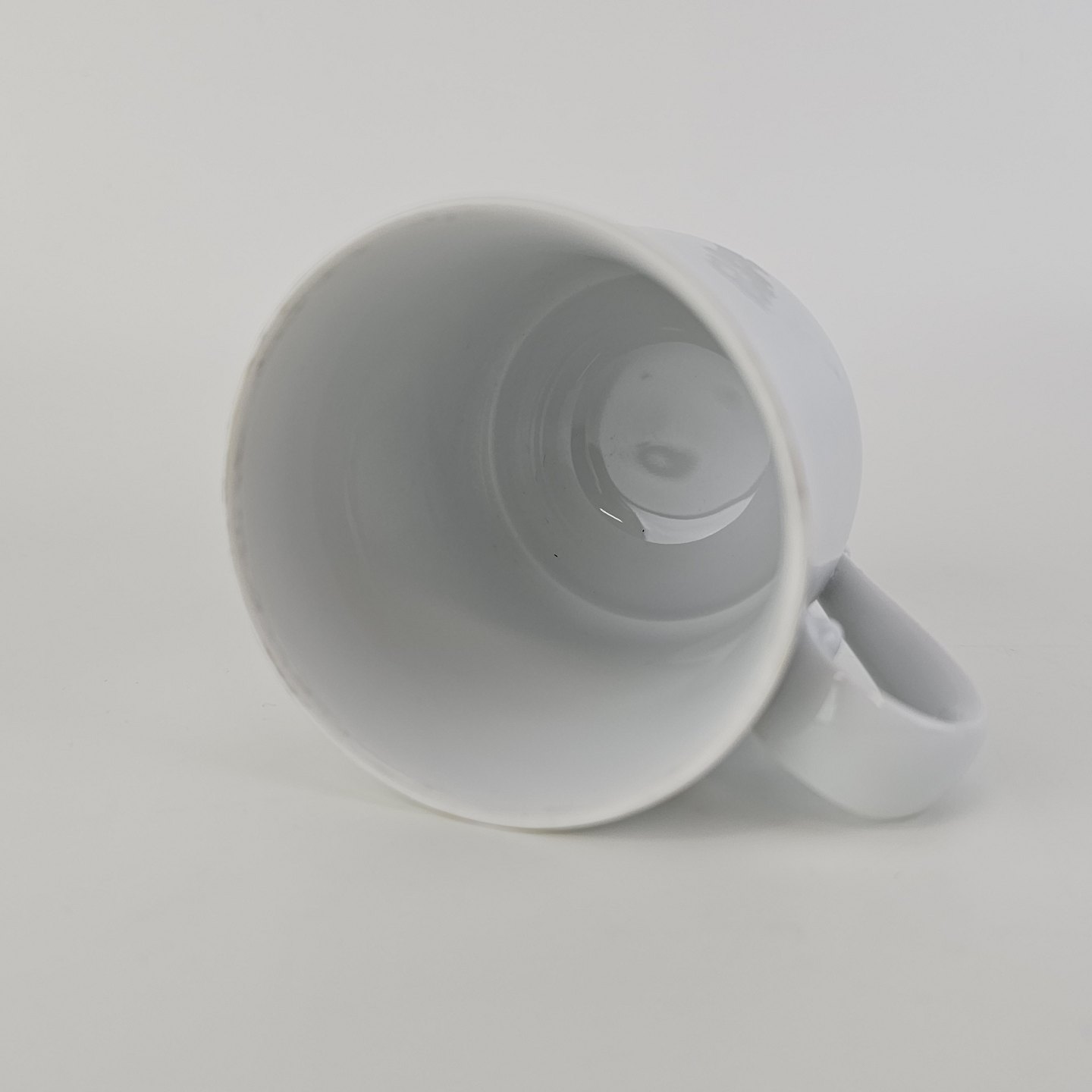 Beskrivelse: Høj kop med underkop i hvidt kongeligt porcelæn