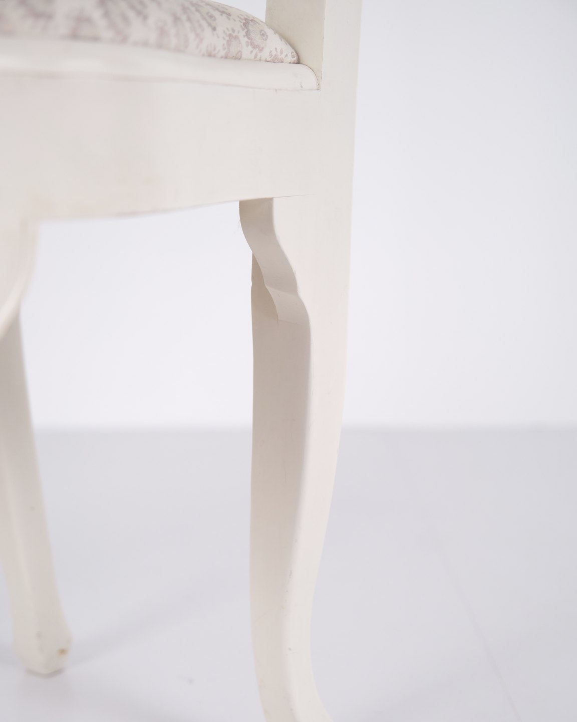 Beskrivelse: Antikke spisebordsstole i ny rokoko stil fra 1920’erne. Sæt af 6 hvidmalede stole med dekorative detaljer.
