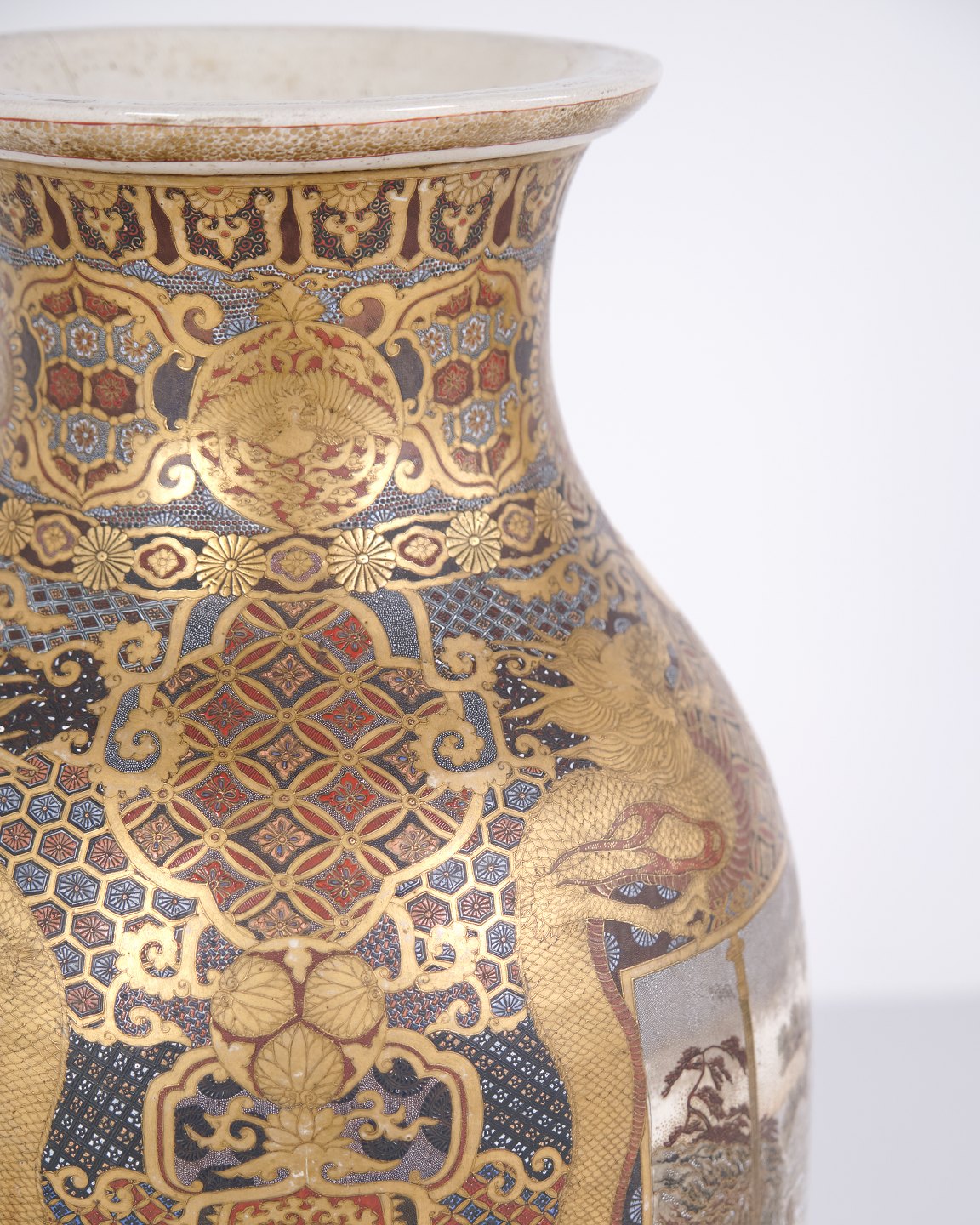 Beskrivelse: Store japanske satsuma-vaser fra Meiji-perioden (1868–1912) i håndmalet porcelæn. Sjældent par satsuma vase Japan 1800-tallet.