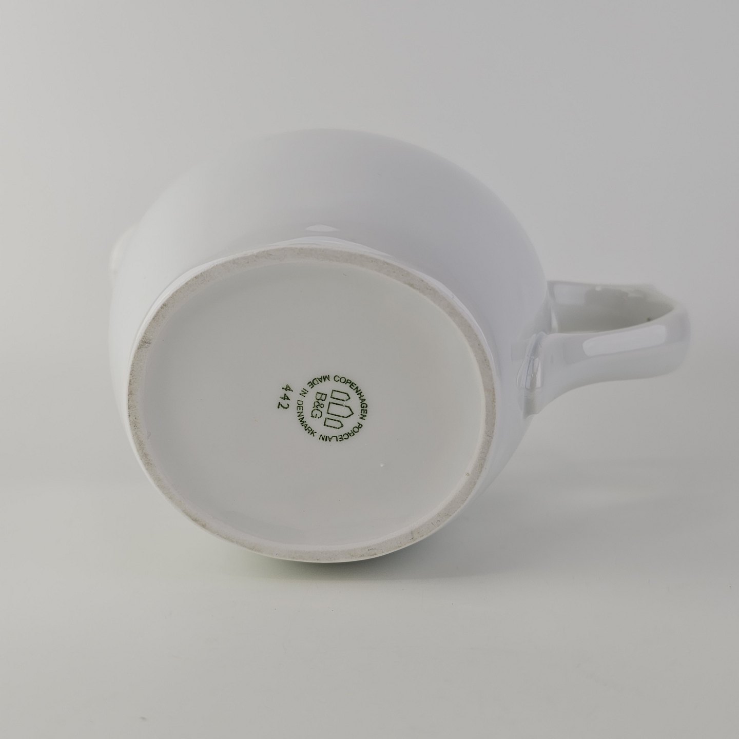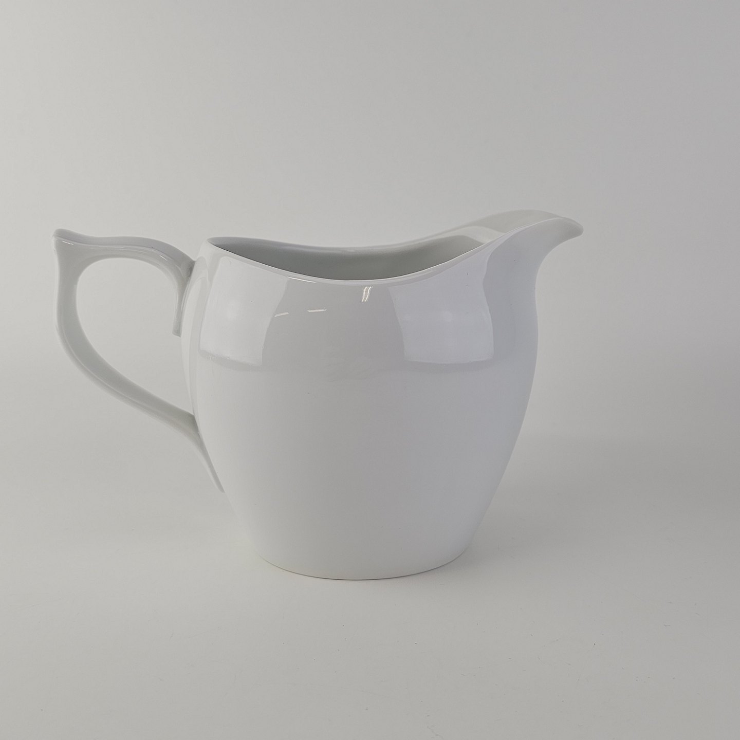 Beskrivelse: Mælkekande i glat hvidt porcelæn fra stellet Sadolin