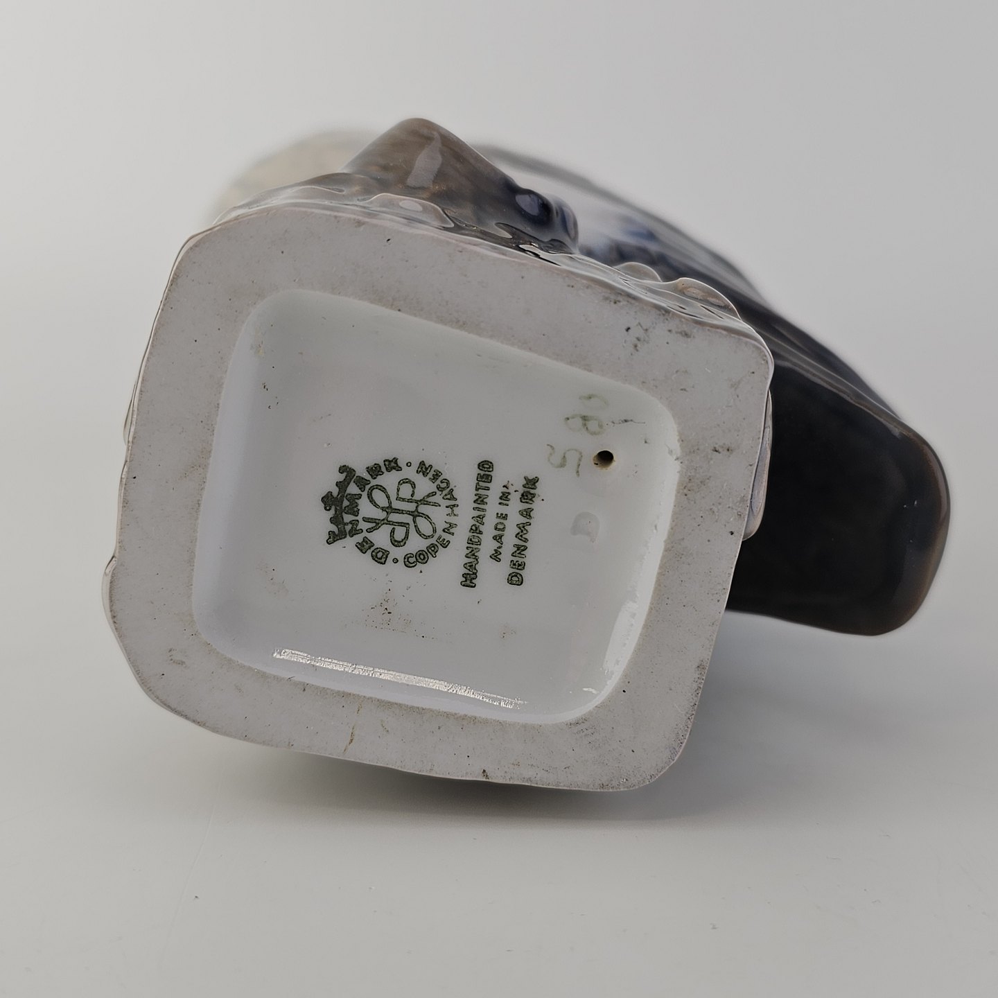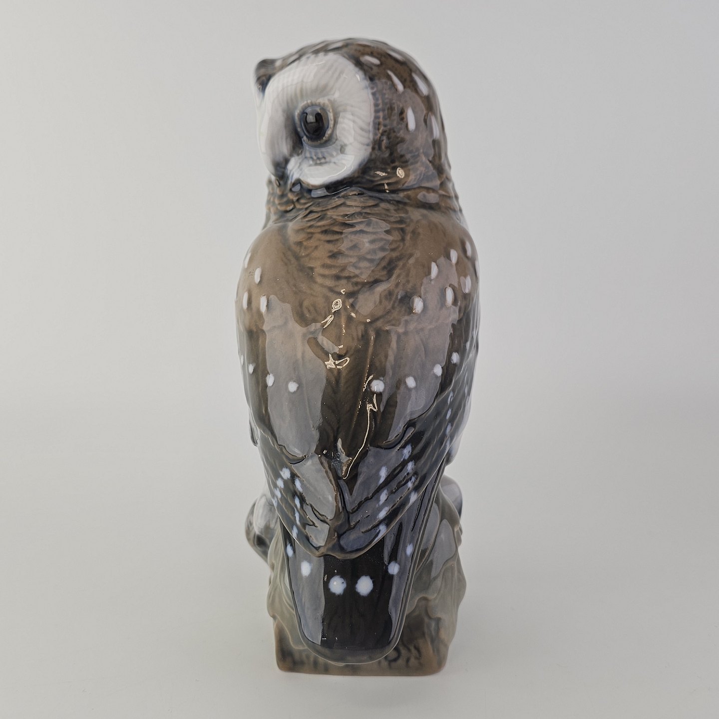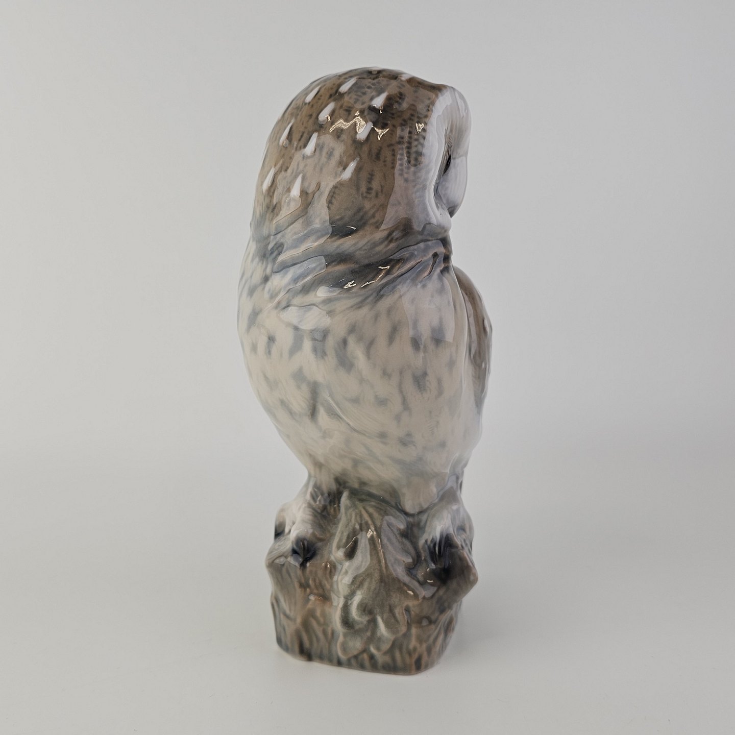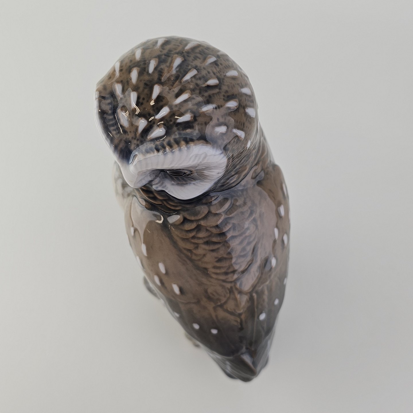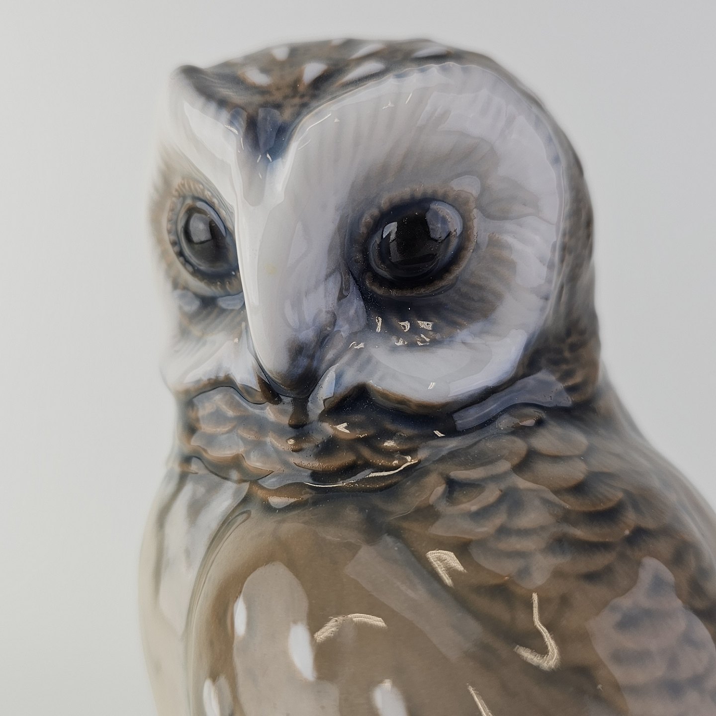 Beskrivelse: Figur i håndmalet porcelæn med motiv af en slørugle