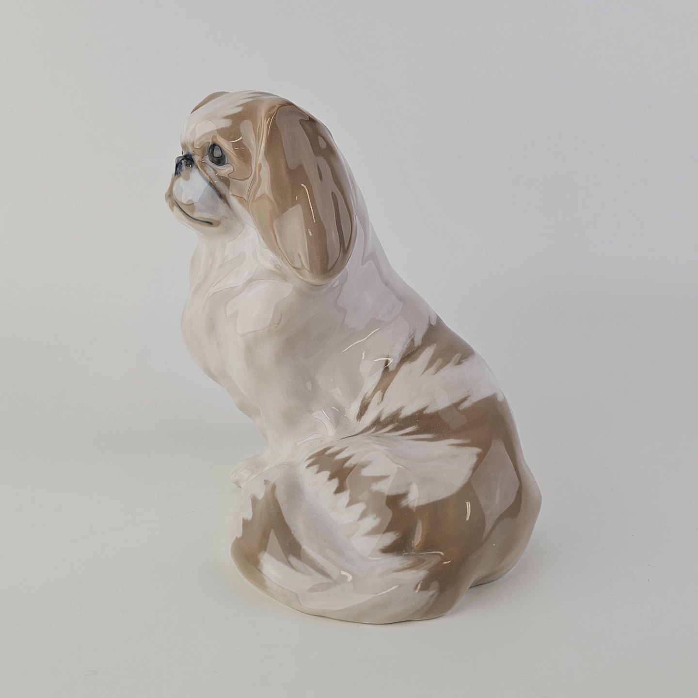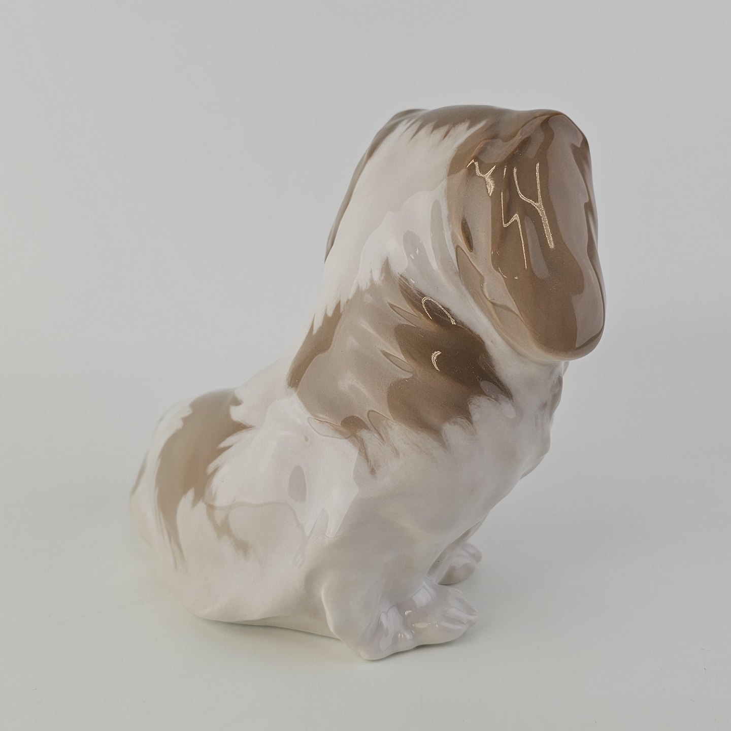 Beskrivelse: Figur i kongeligt porcelæn med motiv af en pekingeser hund