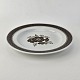 Beskrivelse: Desserttallerken i fajance fra stellet Brun Tranquebar fra år 1919