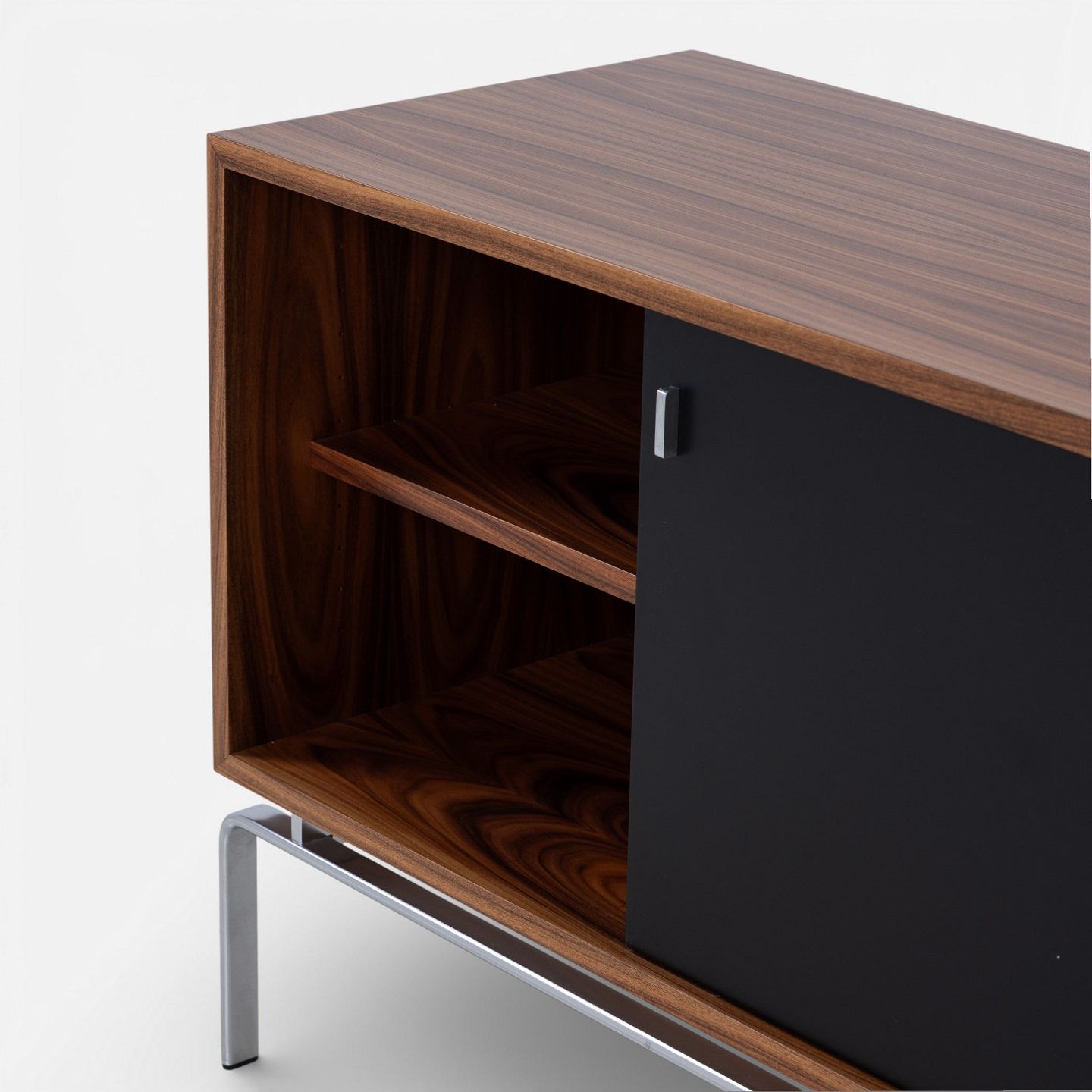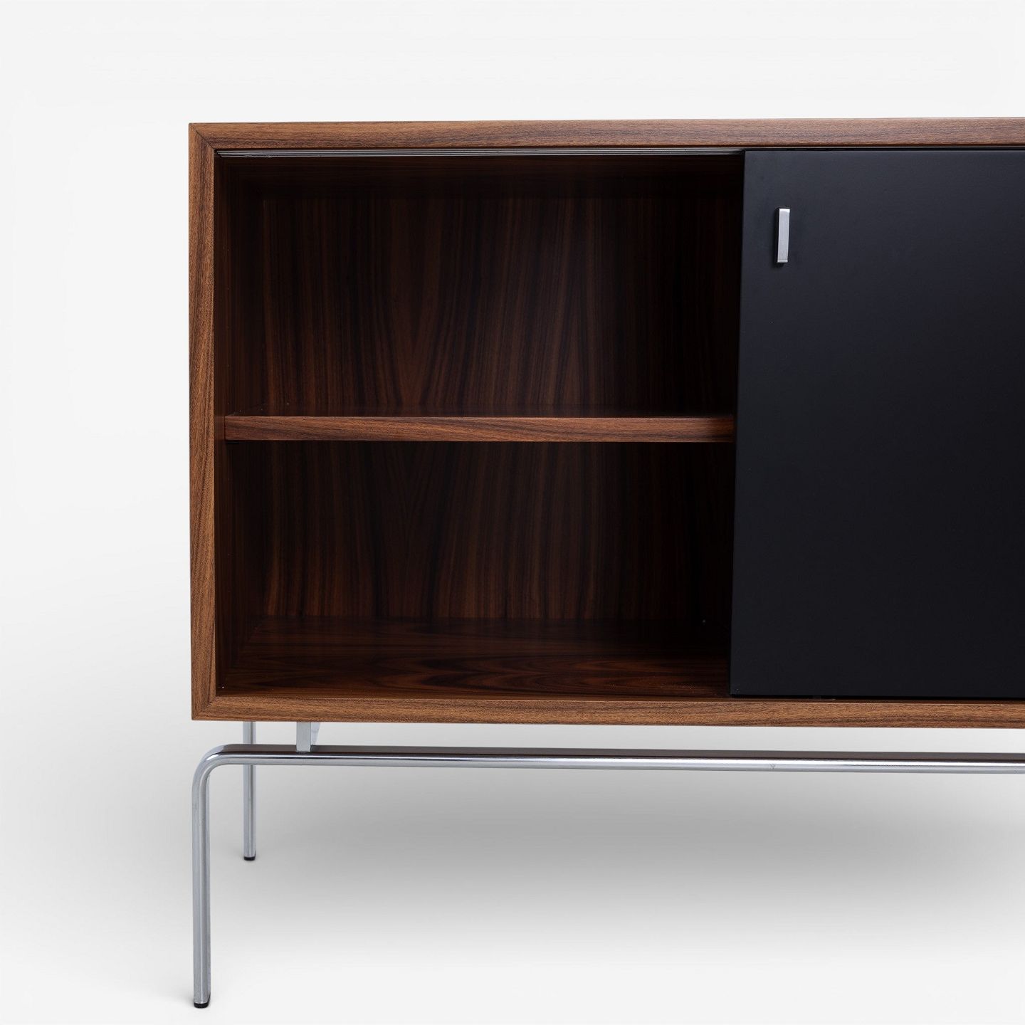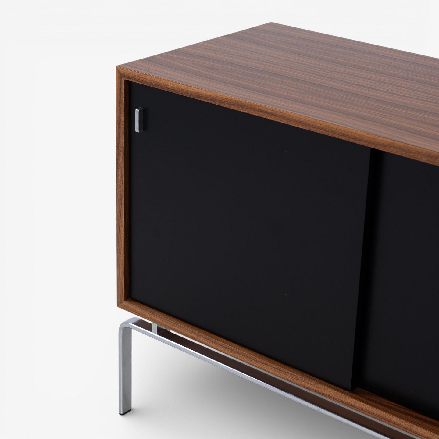 FK 100 - Skænk i palisander med sortlakerede skydelåger og stel i stål.