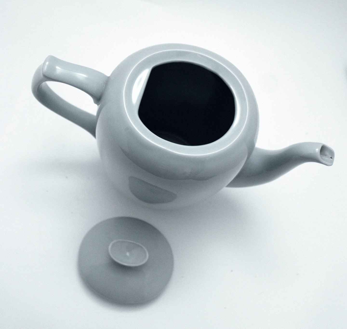 Beskrivelse: Bing & Grøndahl, Leda, Sart lysegrå/lyseblå stel. Kaffekande. Farven snyder meget, på billederne ser det lyseblåt ud og alt efter lyset ser det gråt ud.