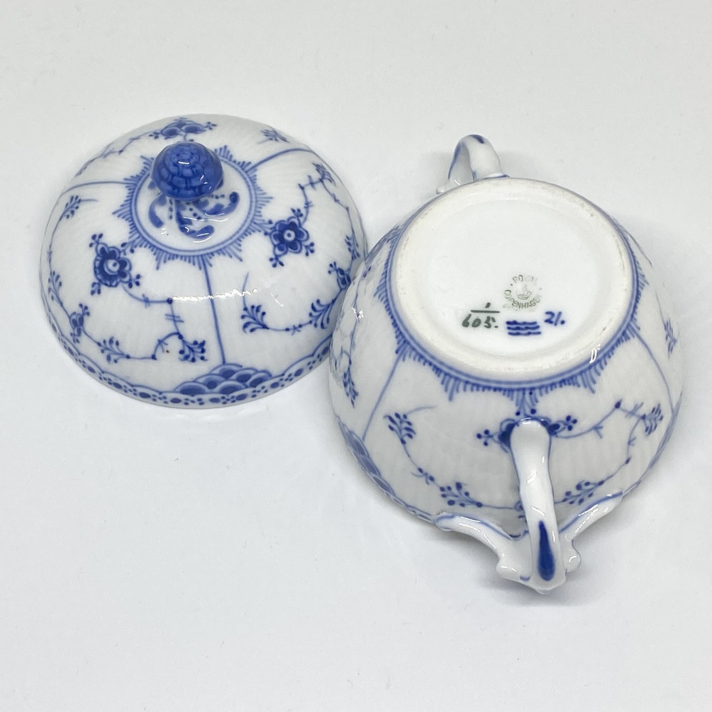 Musselmalet halvblonde. Sukkerskål med låg.