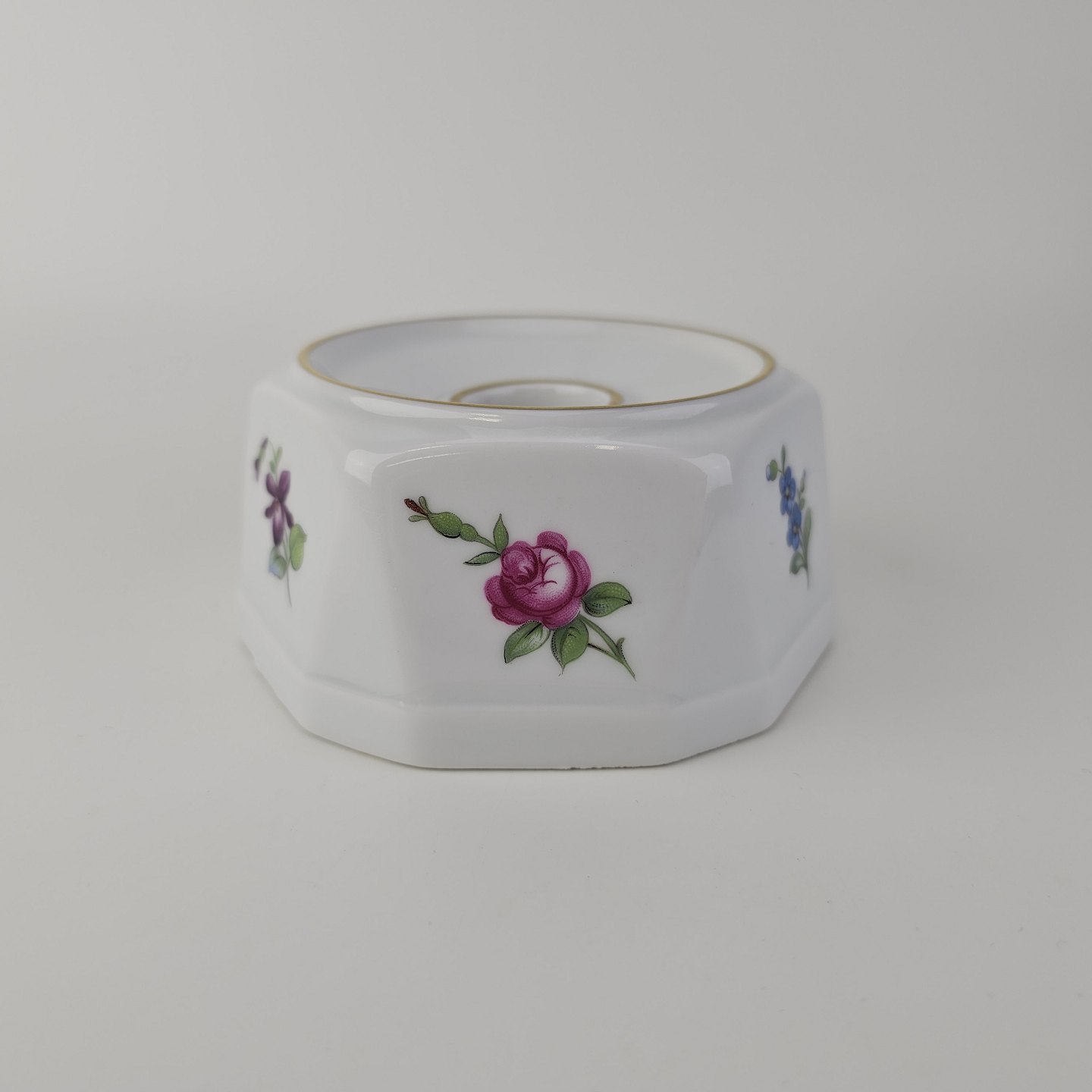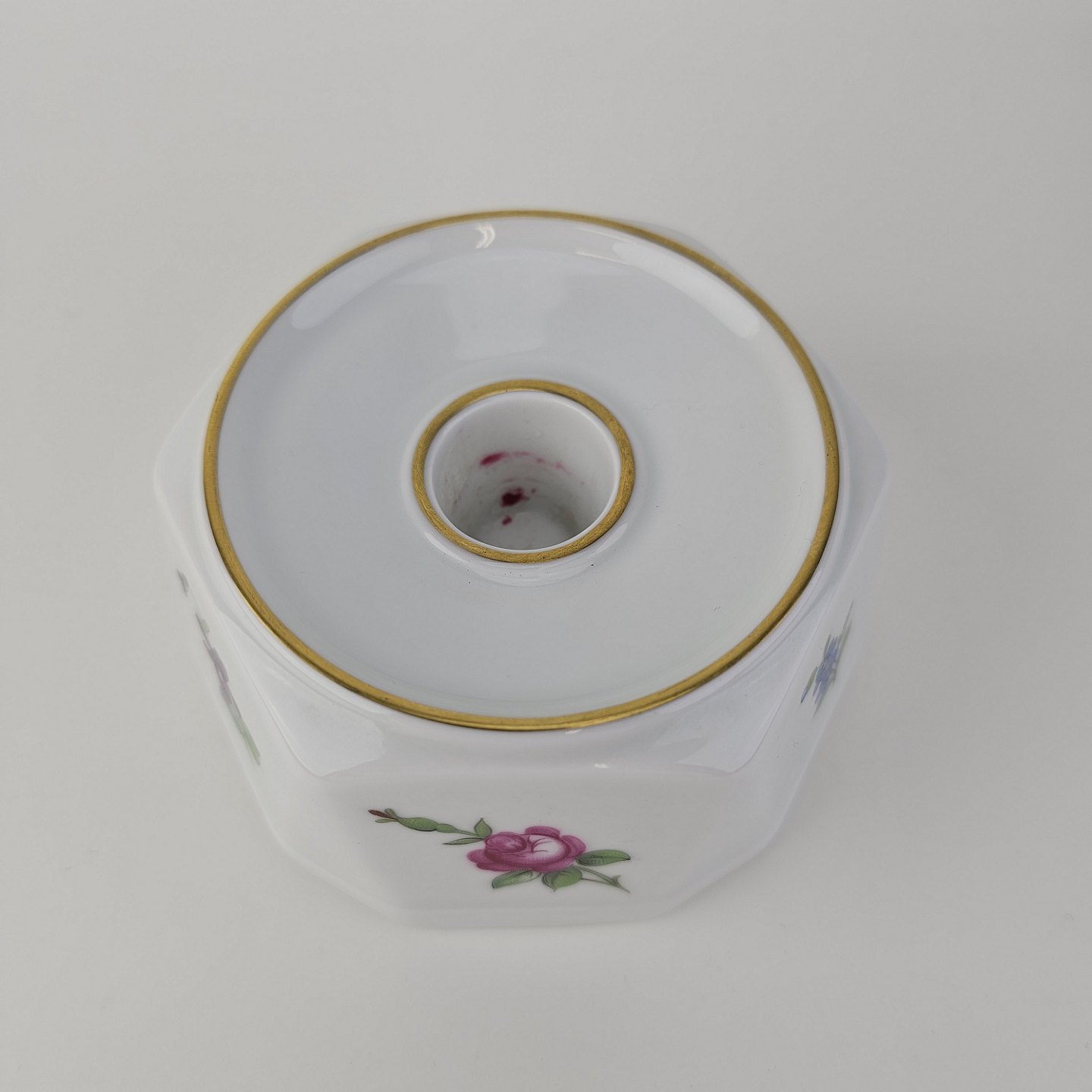 Beskrivelse: Lysestage i porcelæn fra stellet Saksisk blomst