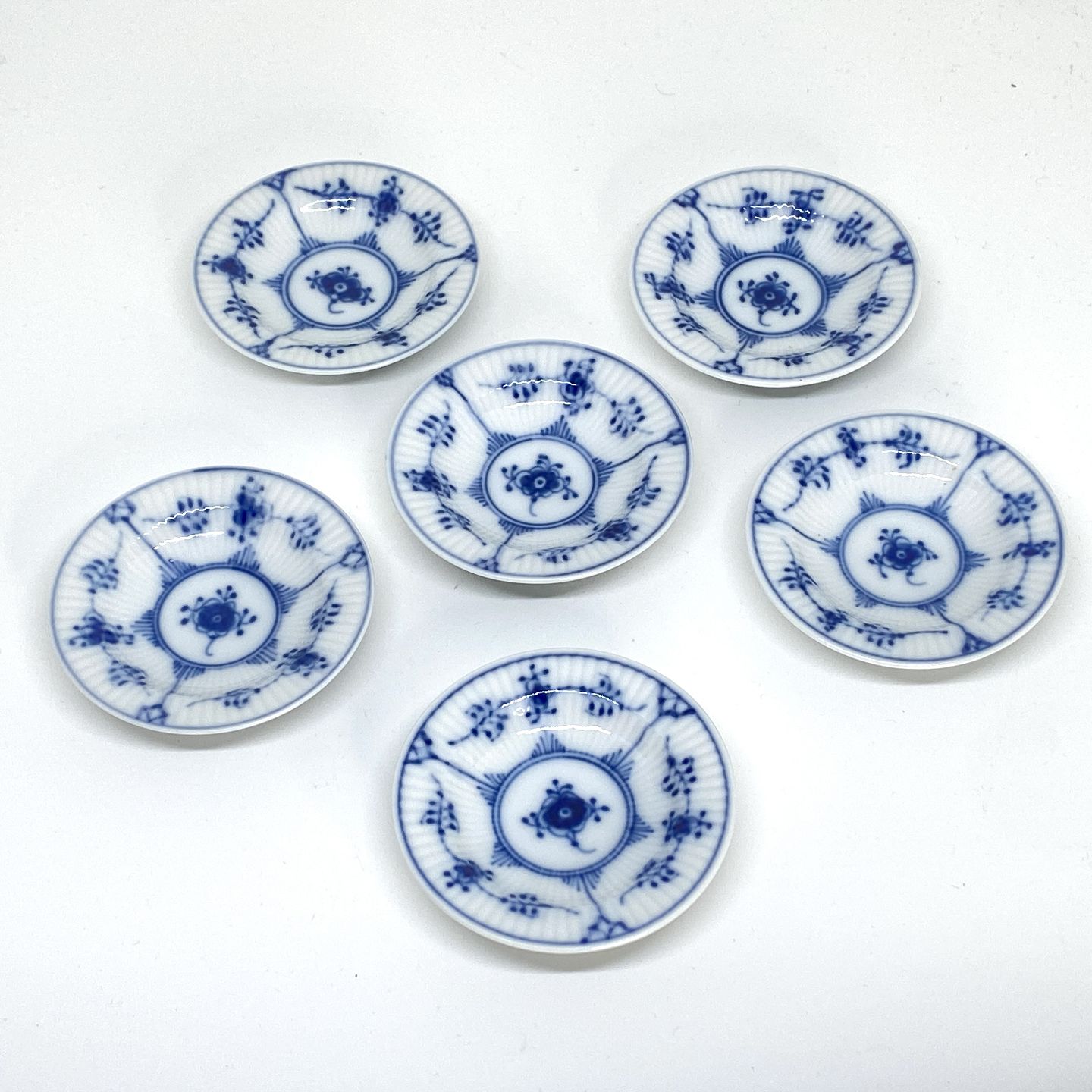 Beskrivelse: Royal Copenhagen/Kgl Musselmalet riflet smør asiet.