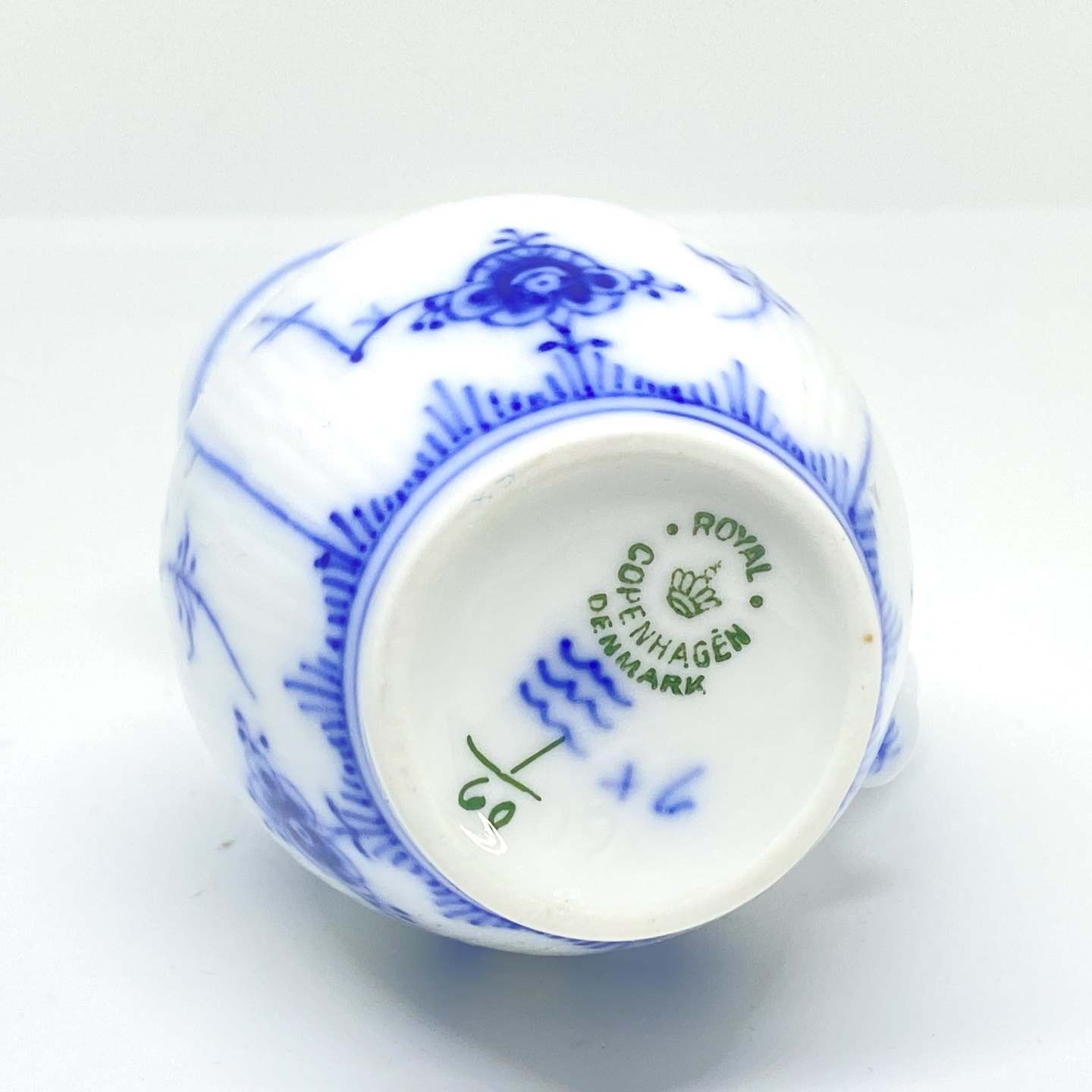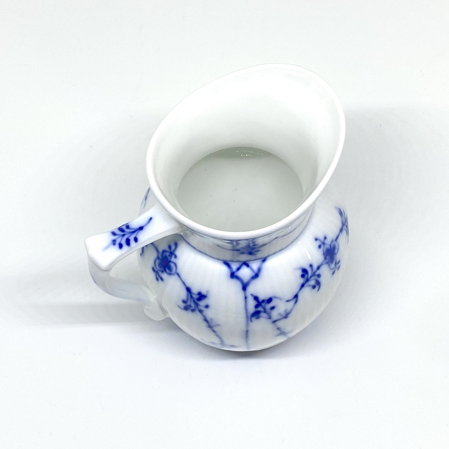 Beskrivelse: Royal Copenhagen/Kgl Musselmalet riflet flødekande.