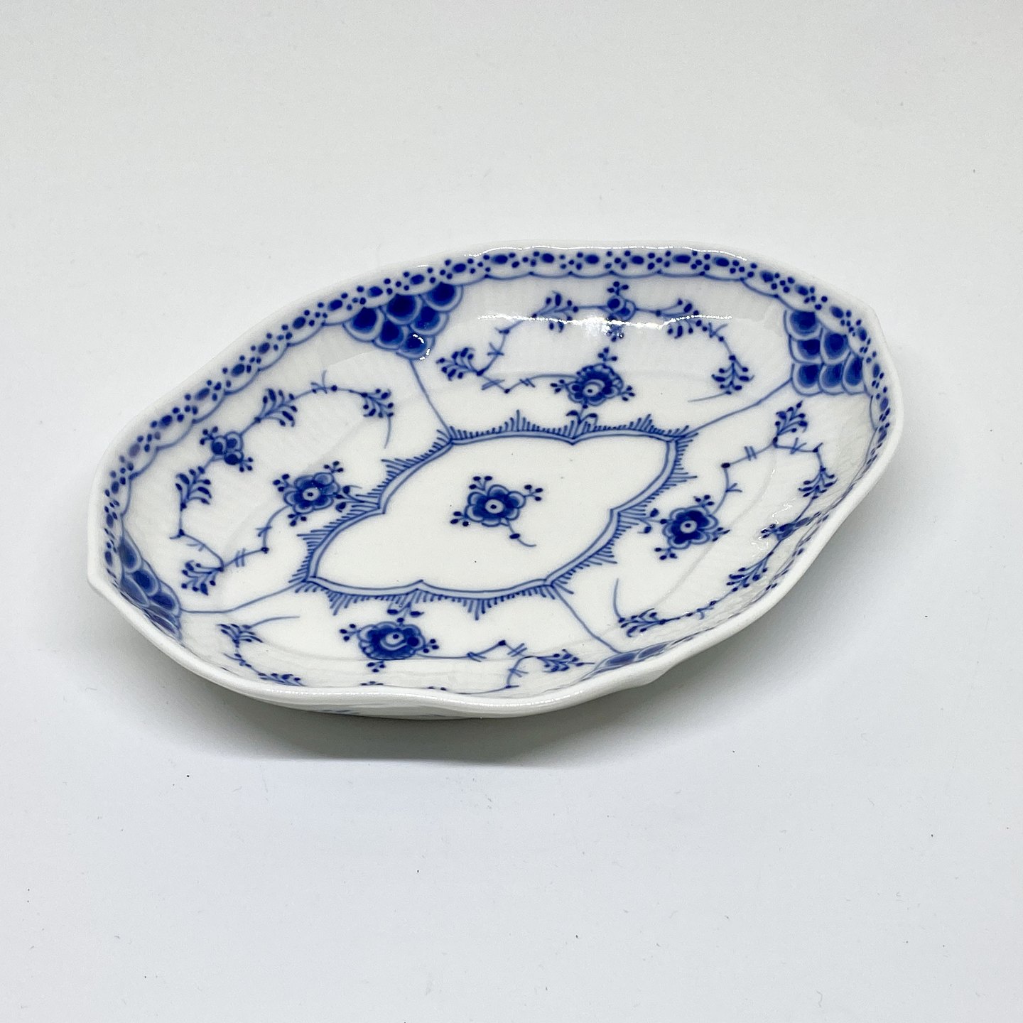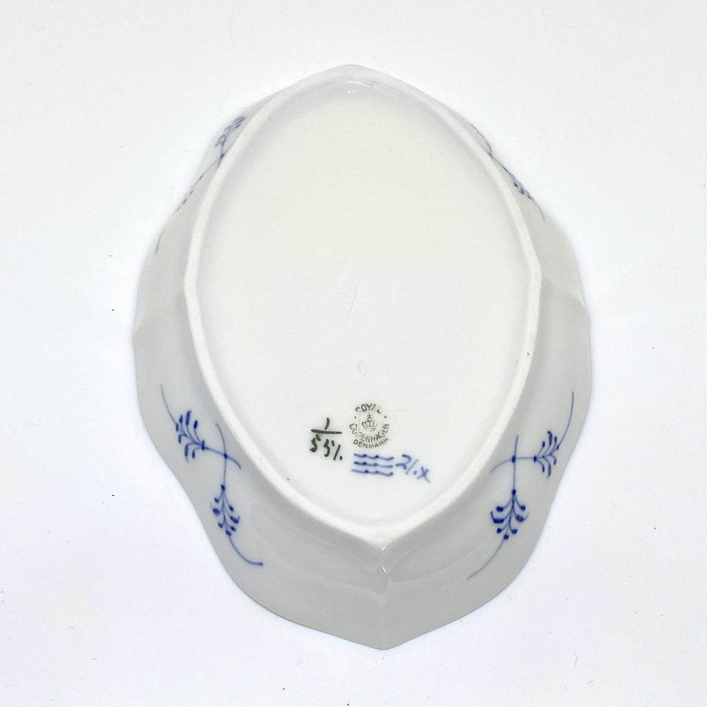 Beskrivelse: Royal Copenhagen/Kgl Musselmalet halvblonde oval asiet.