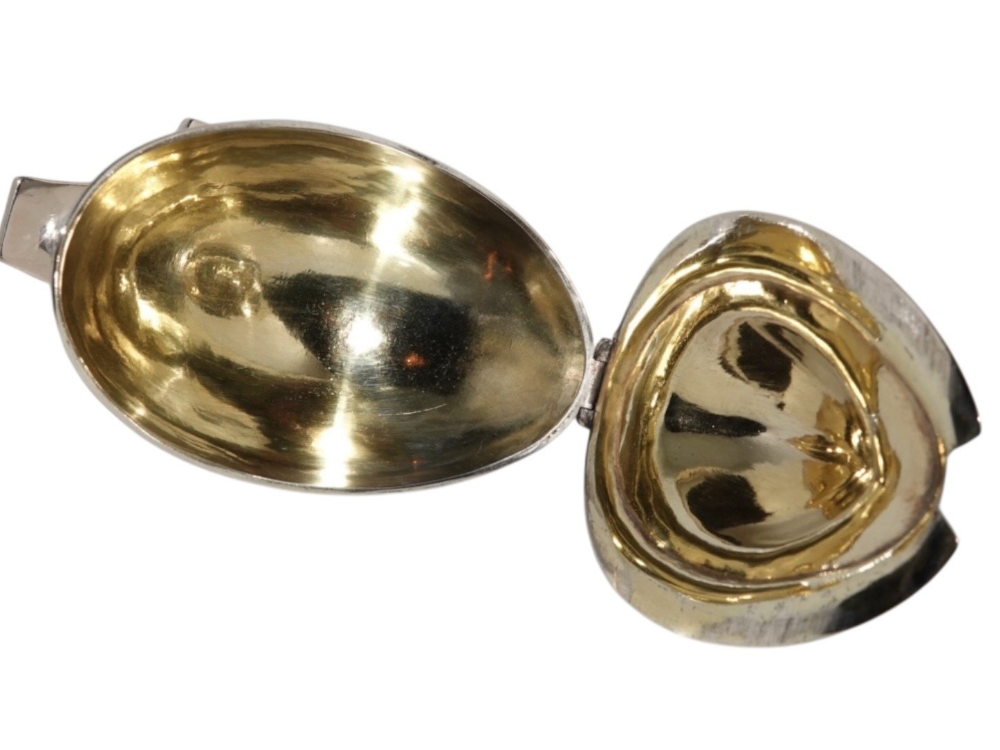 Beskrivelse: Dansk 1700 tals sølv, marmeladekrukke med indvendig forgyldning.