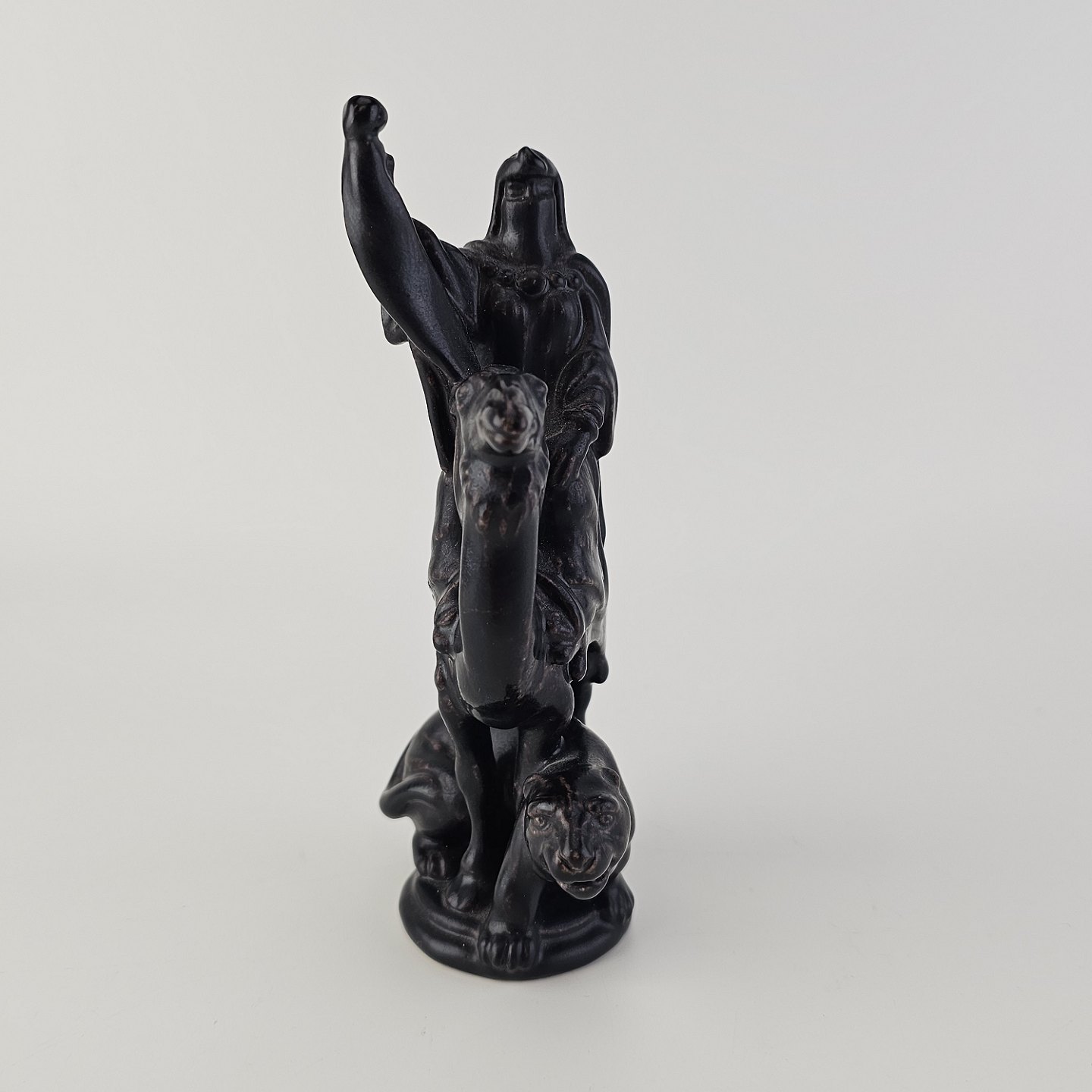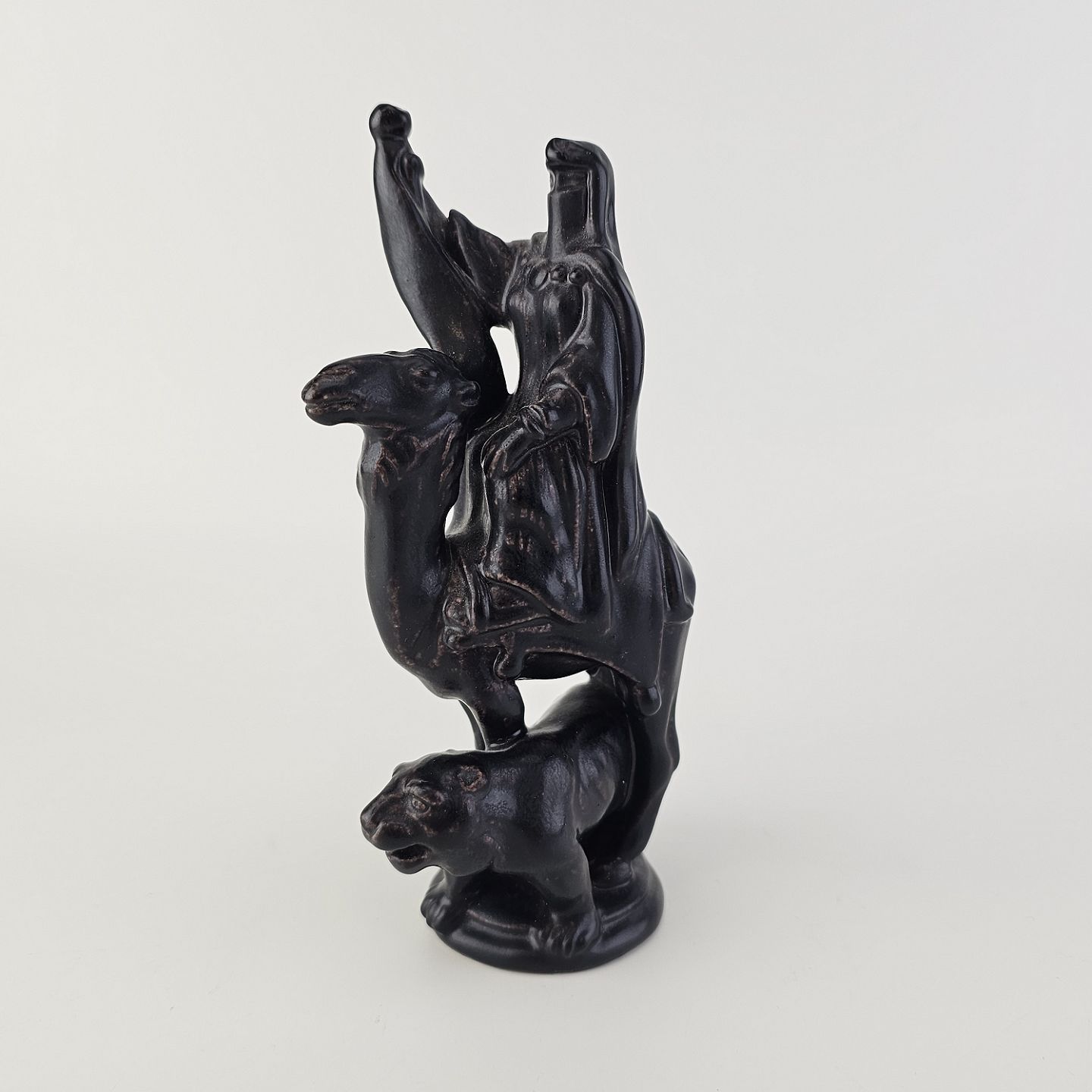 Beskrivelse: Meget sjælden figur i porcelæn fra et sæt skakbrikker med motiver af Richard Løvehjertes tempelriddere og Saladins saracenere. Denne figur er dronningen fra saracenerne og har motiv af en kvinde iklædt slør på en kamel